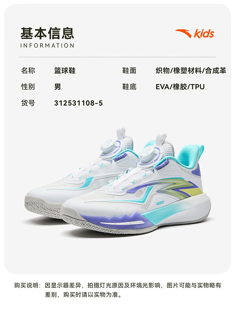安踏儿童篮球鞋男大童2025耐磨专业比赛实战星火篮球鞋312531108