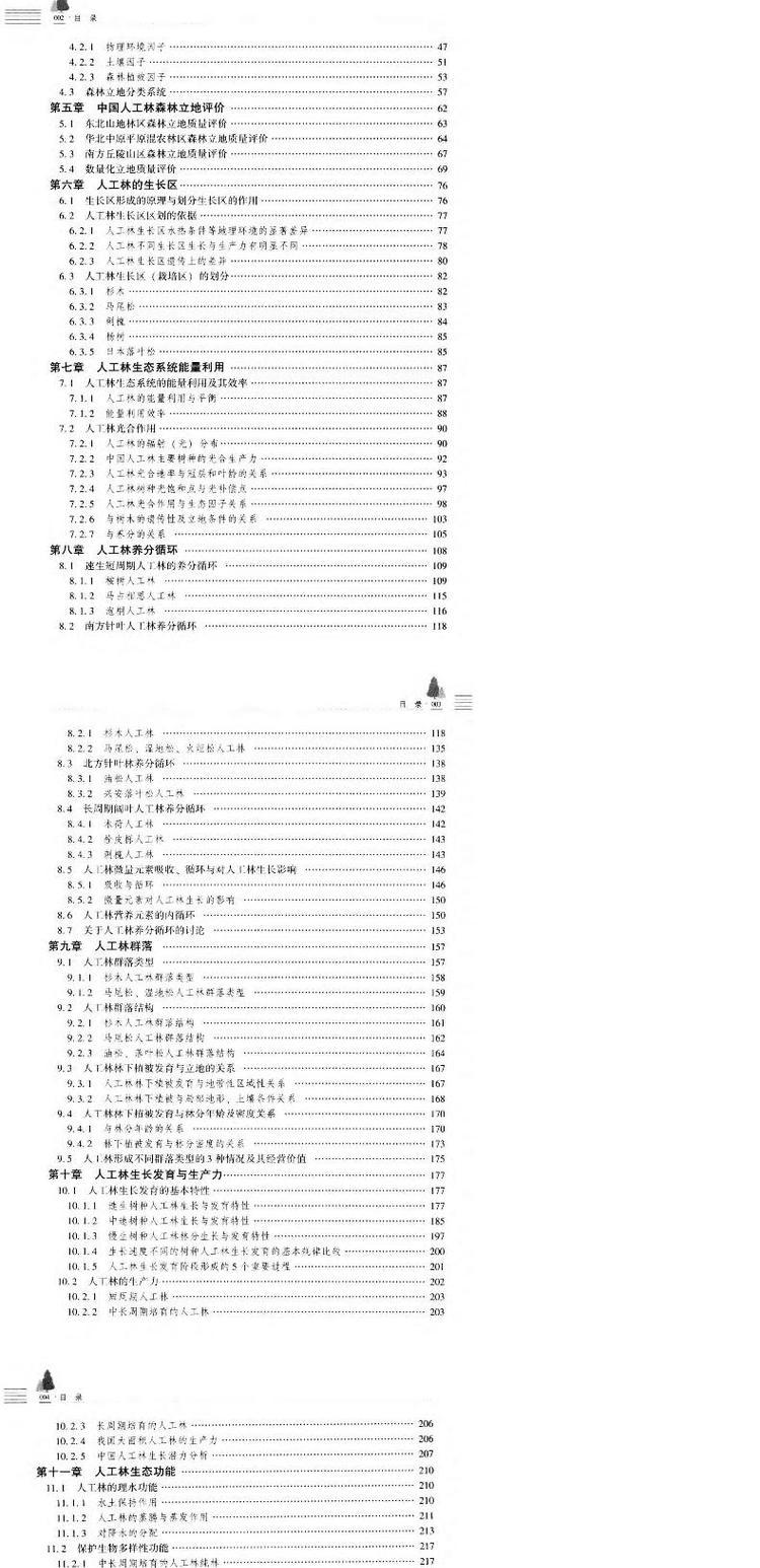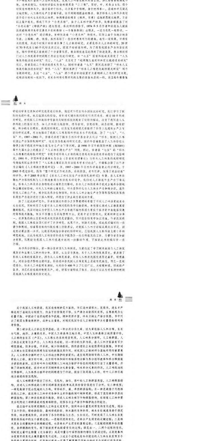 中国人工林及其育林体系7498主要树种区域分布资源生长量与基地分布生长于气候地形土壤的关系生态系统能量利用生态功能病虫害林业