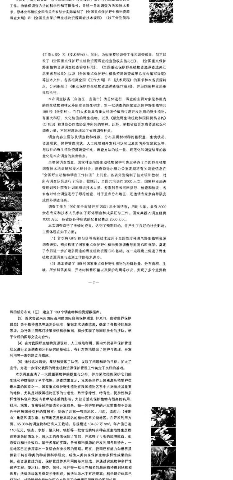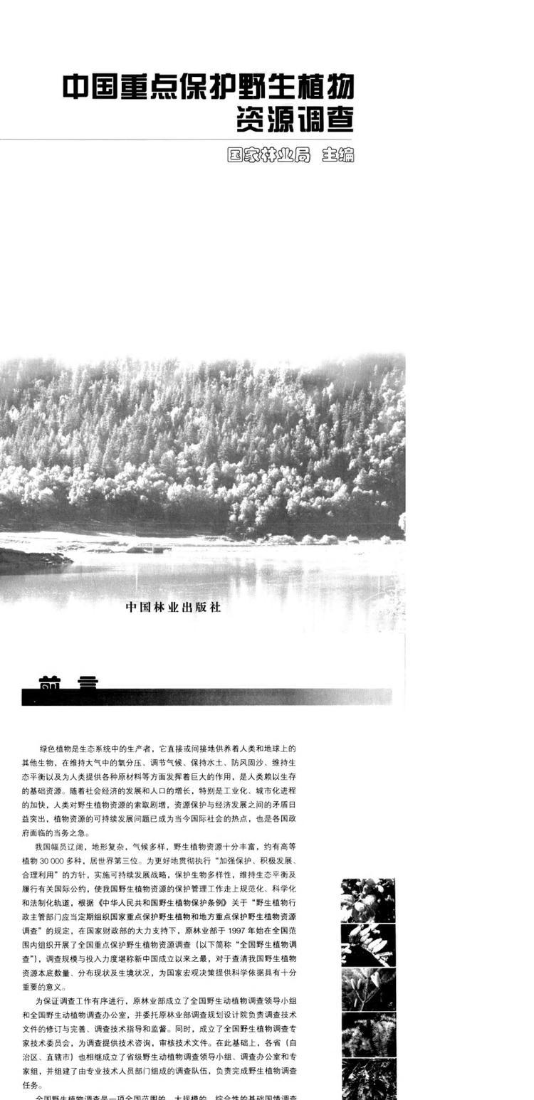 中国重点保护野生植物资源调查5137然地理环境气候地貌土壤植被野生资源人工栽培植物资源保护管理自然保护区建设科学研究中国林业