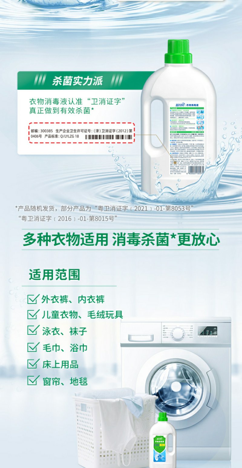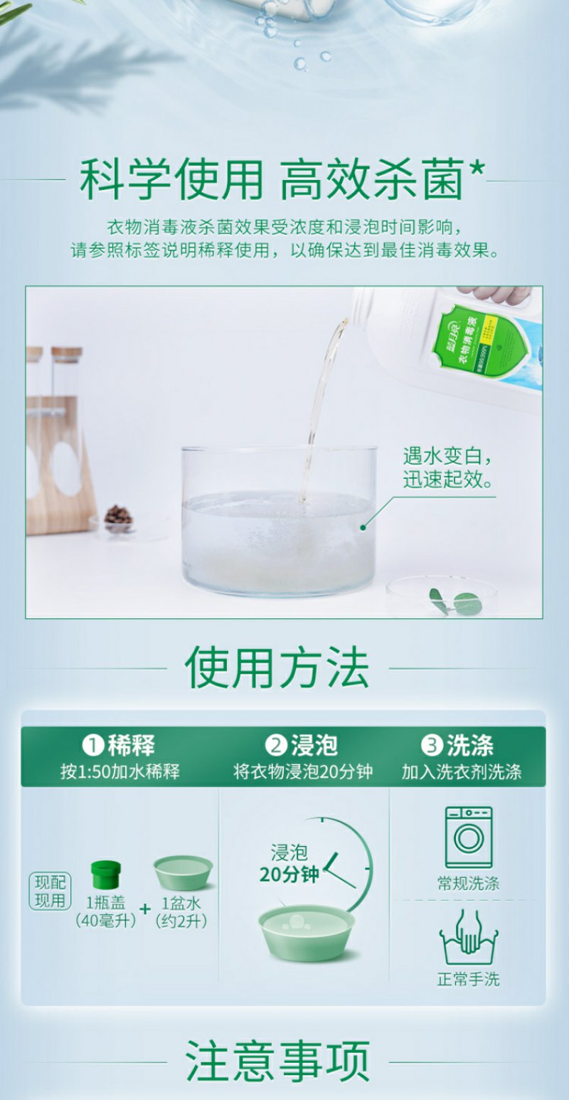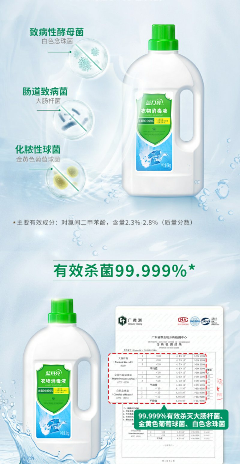 蓝月亮 卫诺 衣物消毒液 衣物除菌液1kg*3 有效杀菌99.999%