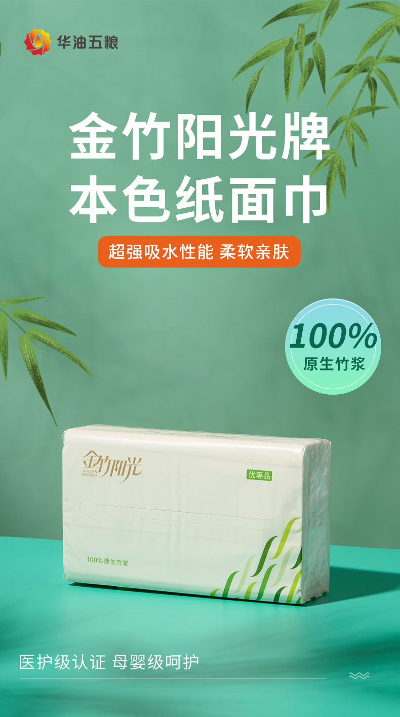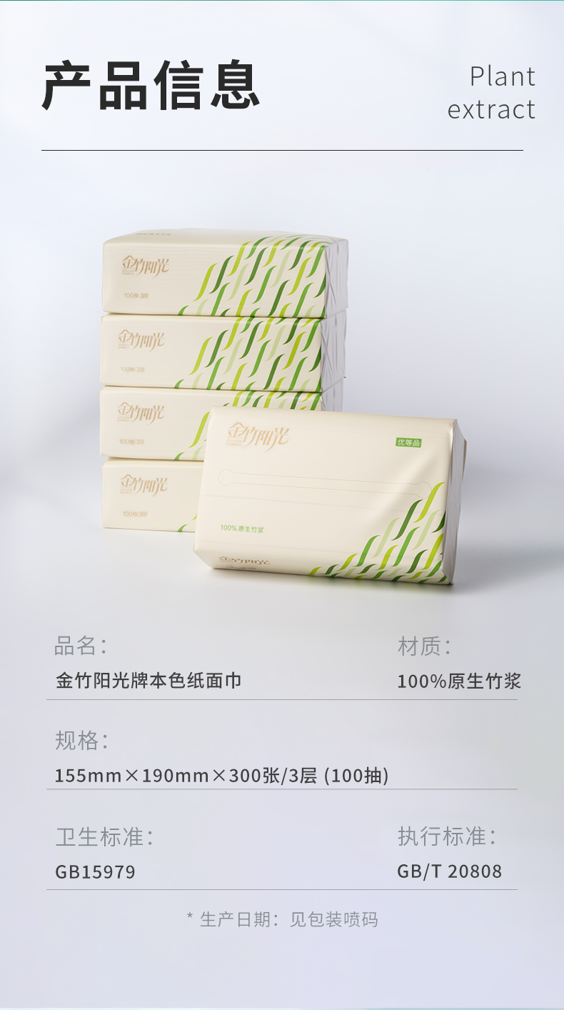 金竹阳光医护母婴级本色纸面巾155mm*190mm*3层*100抽 20包/箱