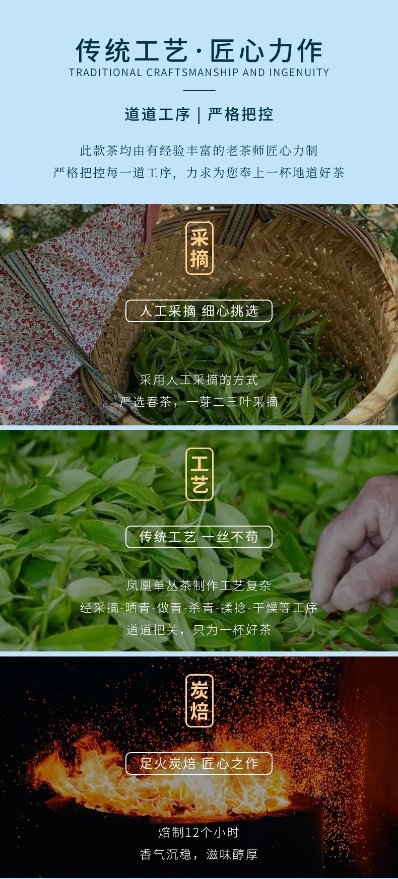 【选料标准】:凤凰山核心产区,中山鸭屎香,海拔600米,原料炭焙
