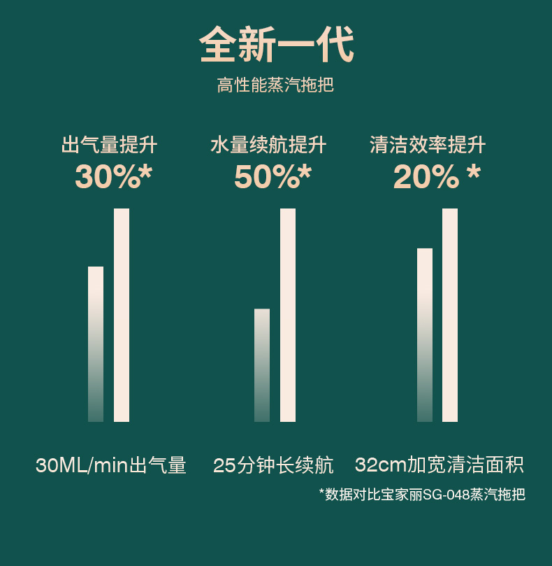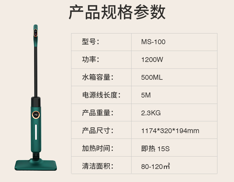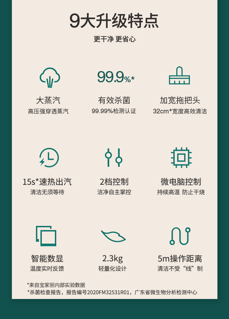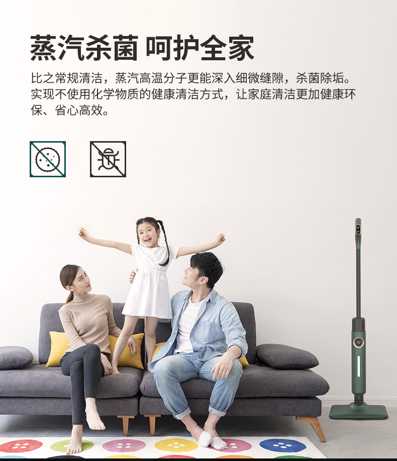 宝家丽高温蒸汽拖把家用消毒一体智能拖地机清洁机非无线 MS-100
