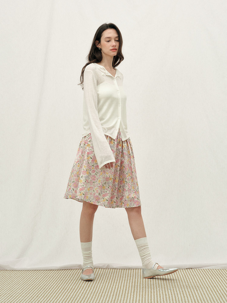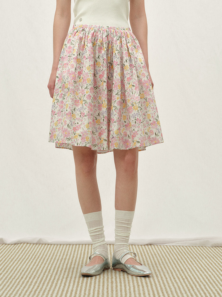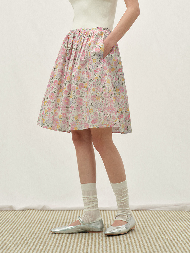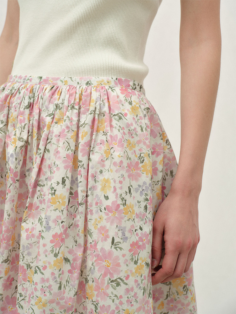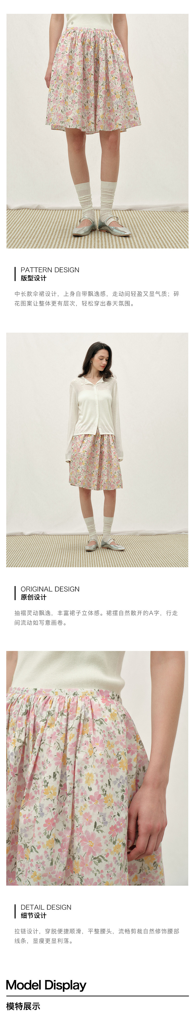 ForPoem 26/SS 原创设计落樱粉碎花中长半裙a字精致休闲伞裙裙子