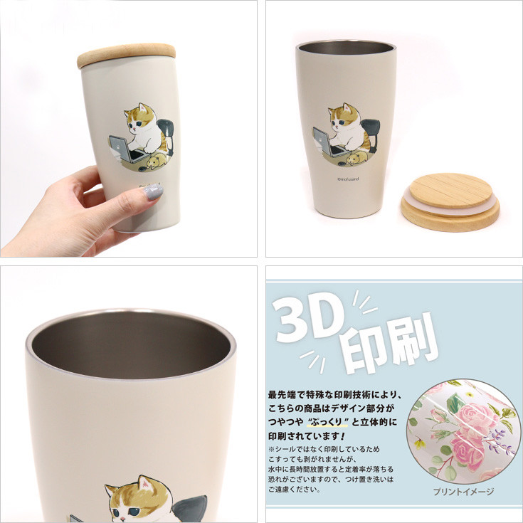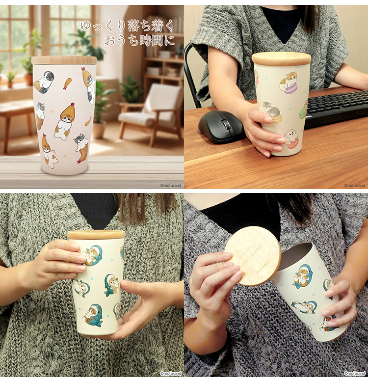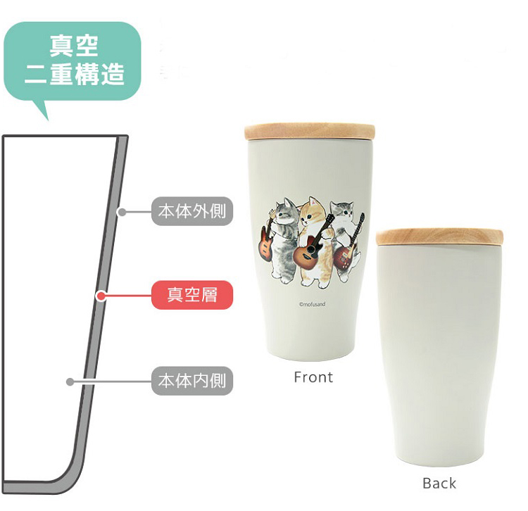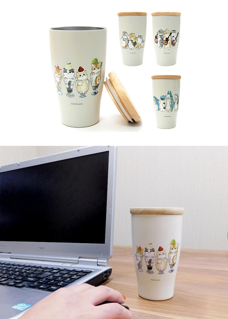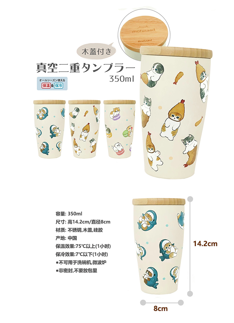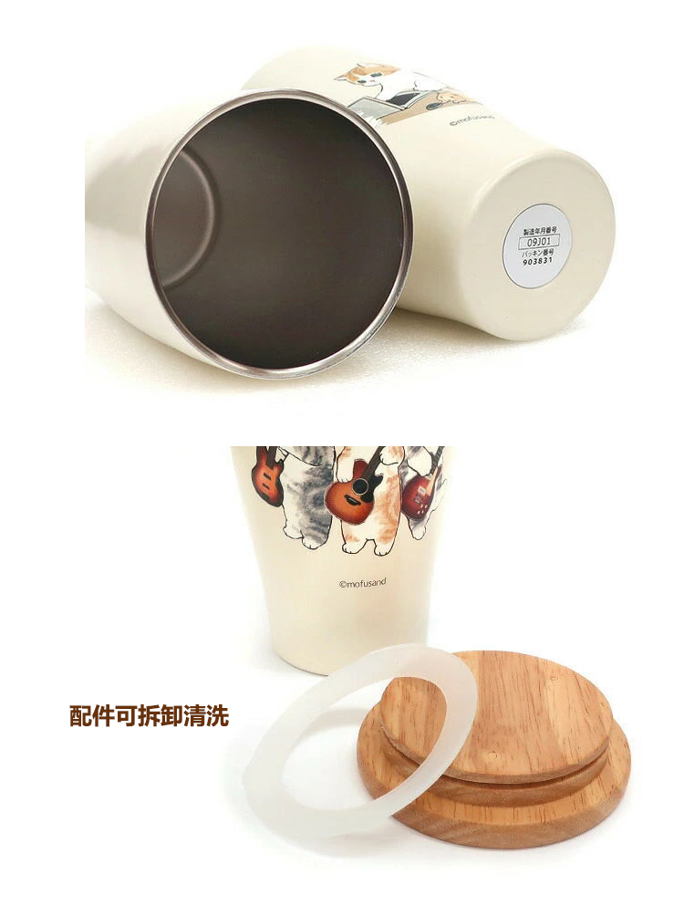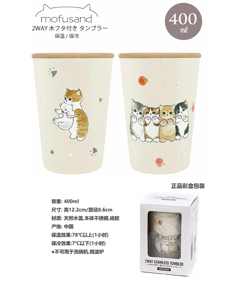 日本进口东亚金属mofusand 带木盖不锈钢随行杯350ml(猫爪咖啡)