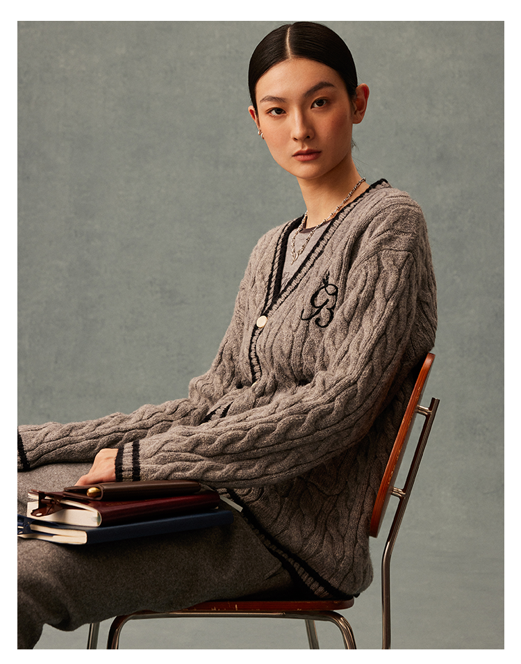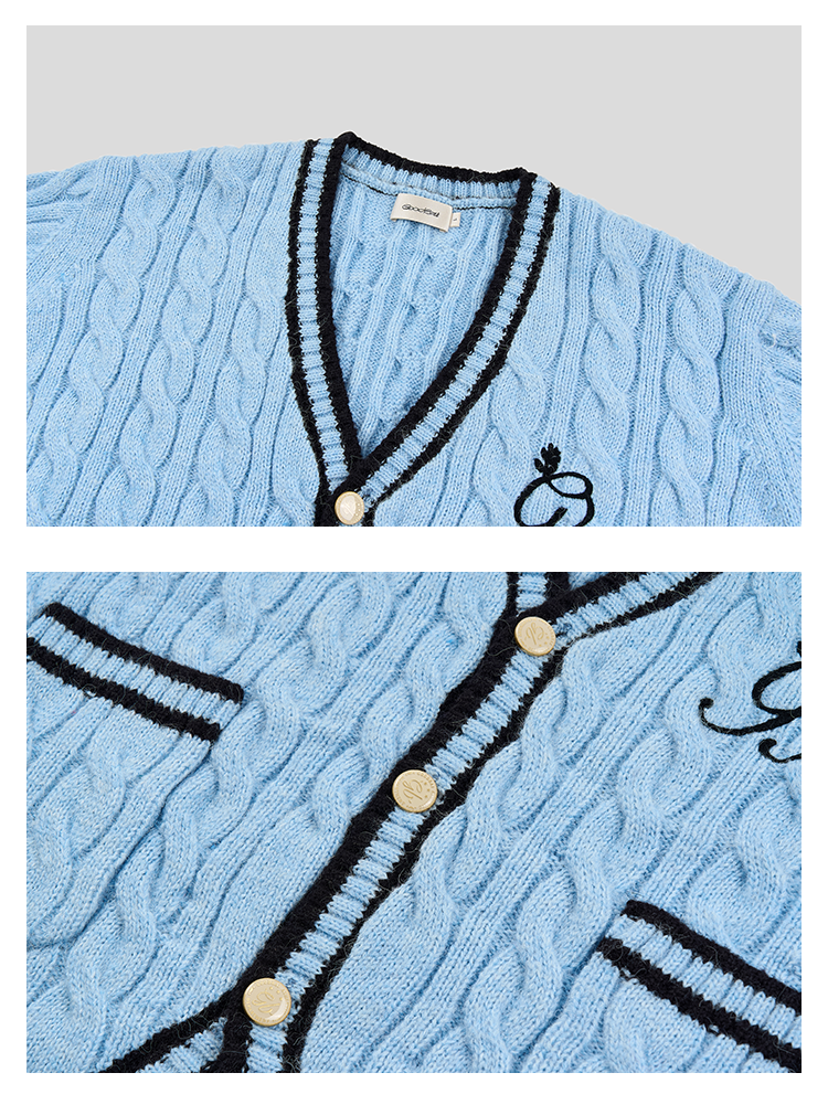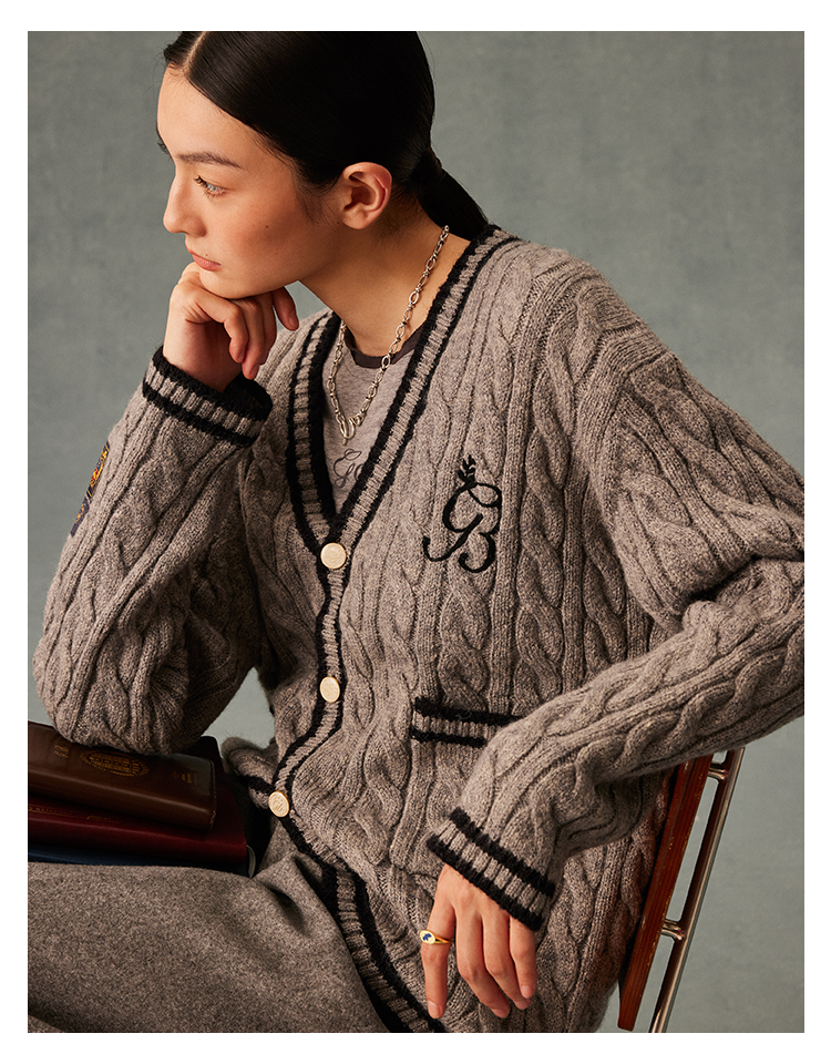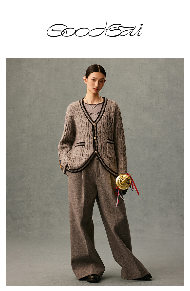 GOODBAI GB logo链条绣绣章oversize毛衣开衫