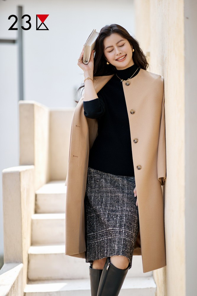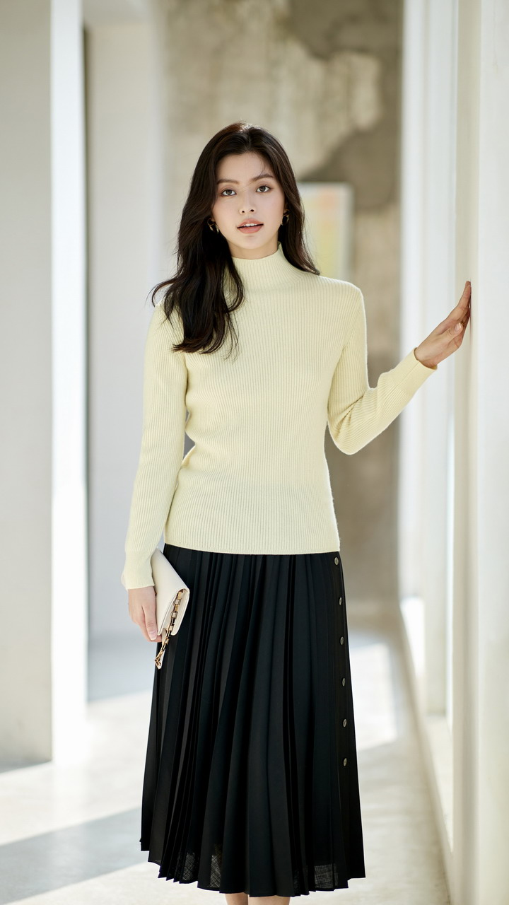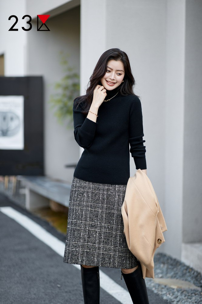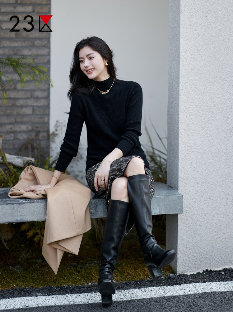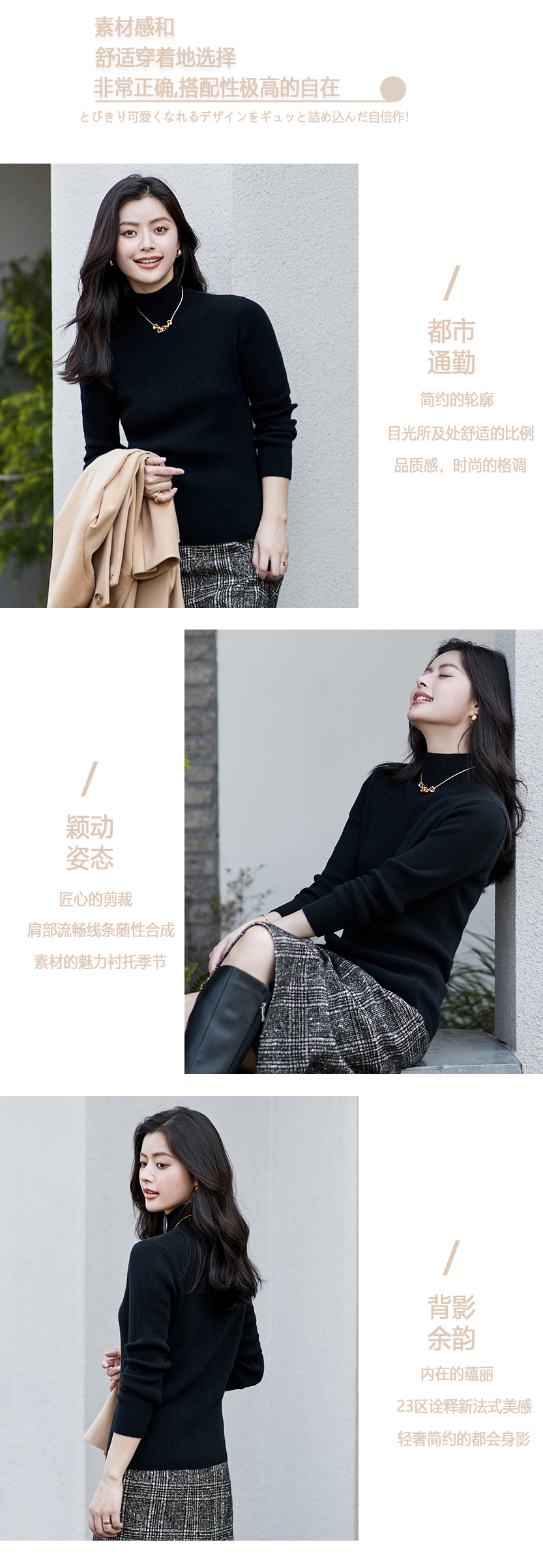 23区日系秋季通勤修身羊绒羊毛混纺半高领毛衣打底毛衫商场同款