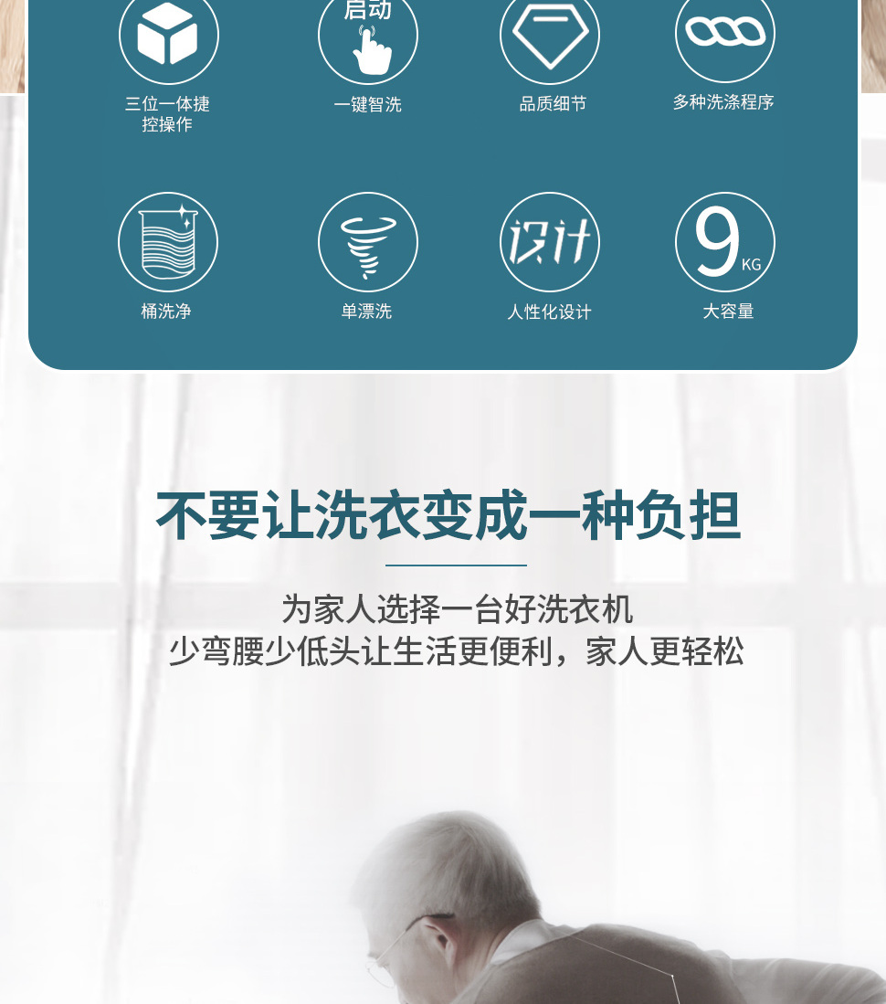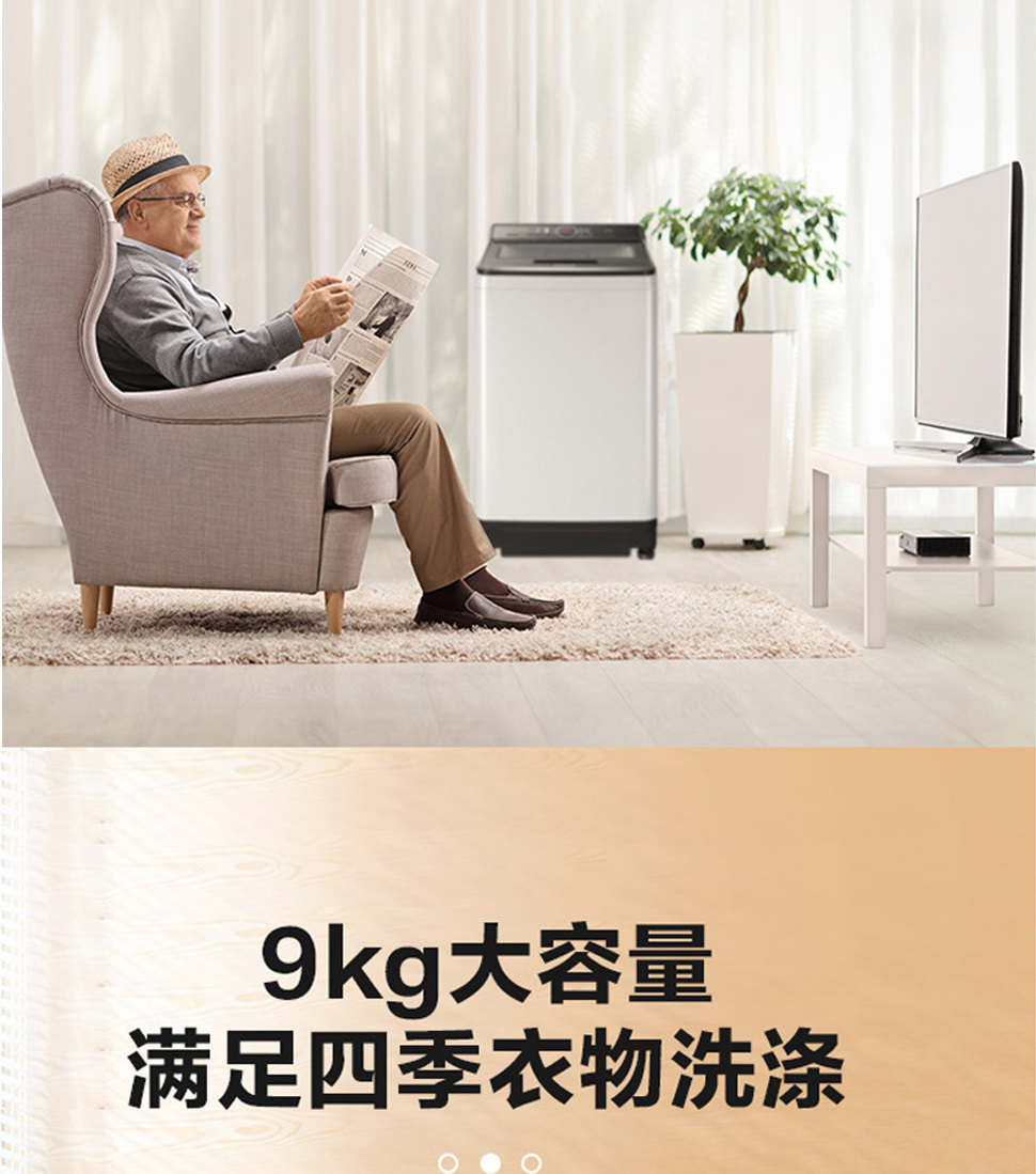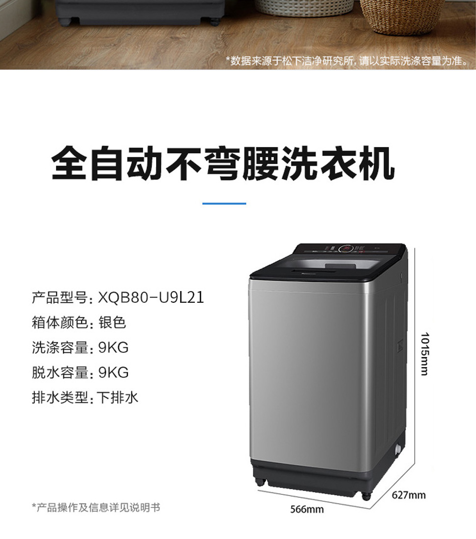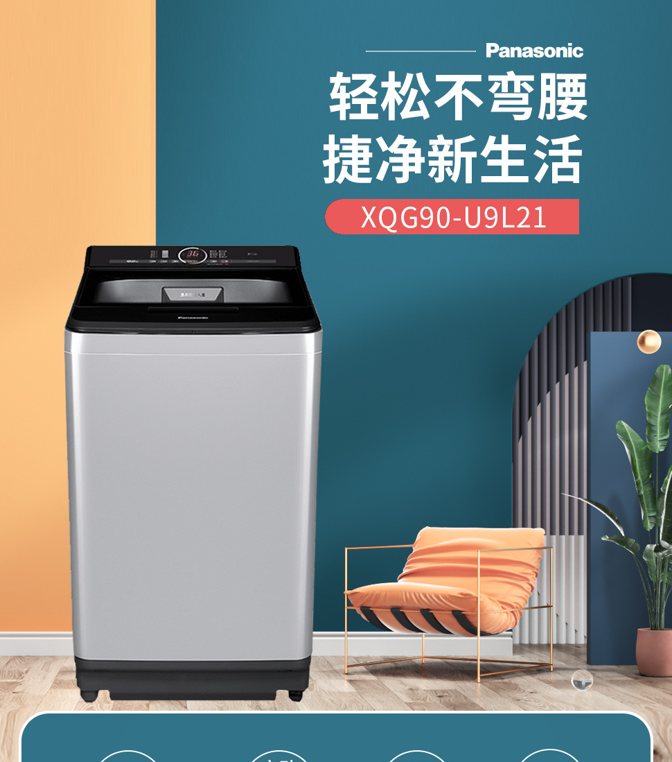 松下(Panasonic)XQB90-U9L21 9kg大容量 不弯腰系列 一键智洗 线下同款