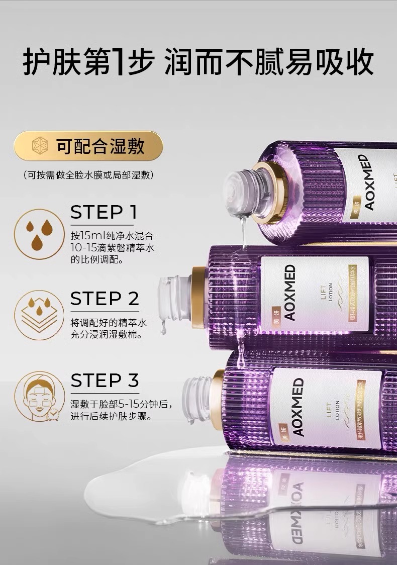 AOXMED瑷科缦紧致凝时臻颜精华水150ml/瓶(紫磐精萃水)