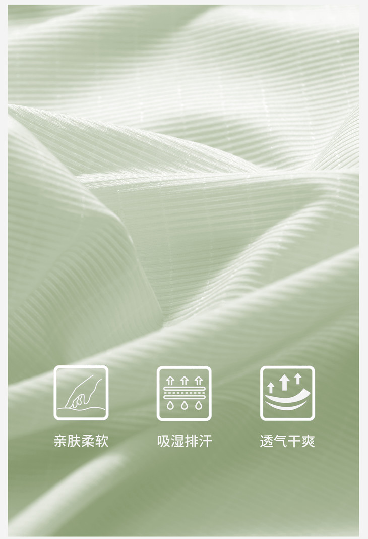 😶🌫7A级面料 冰凉纱线和透气的条纹结构同时满足凉感 所有走线都工整整洁 全方面符合身形让你除了舒适还是舒适