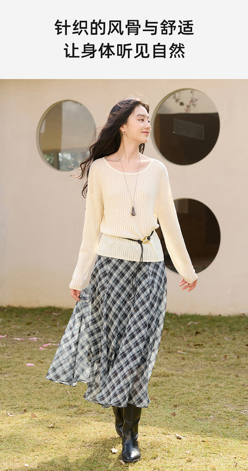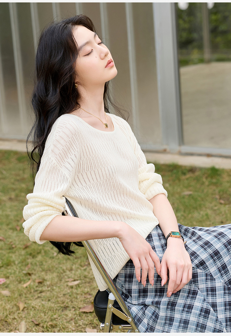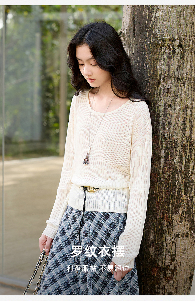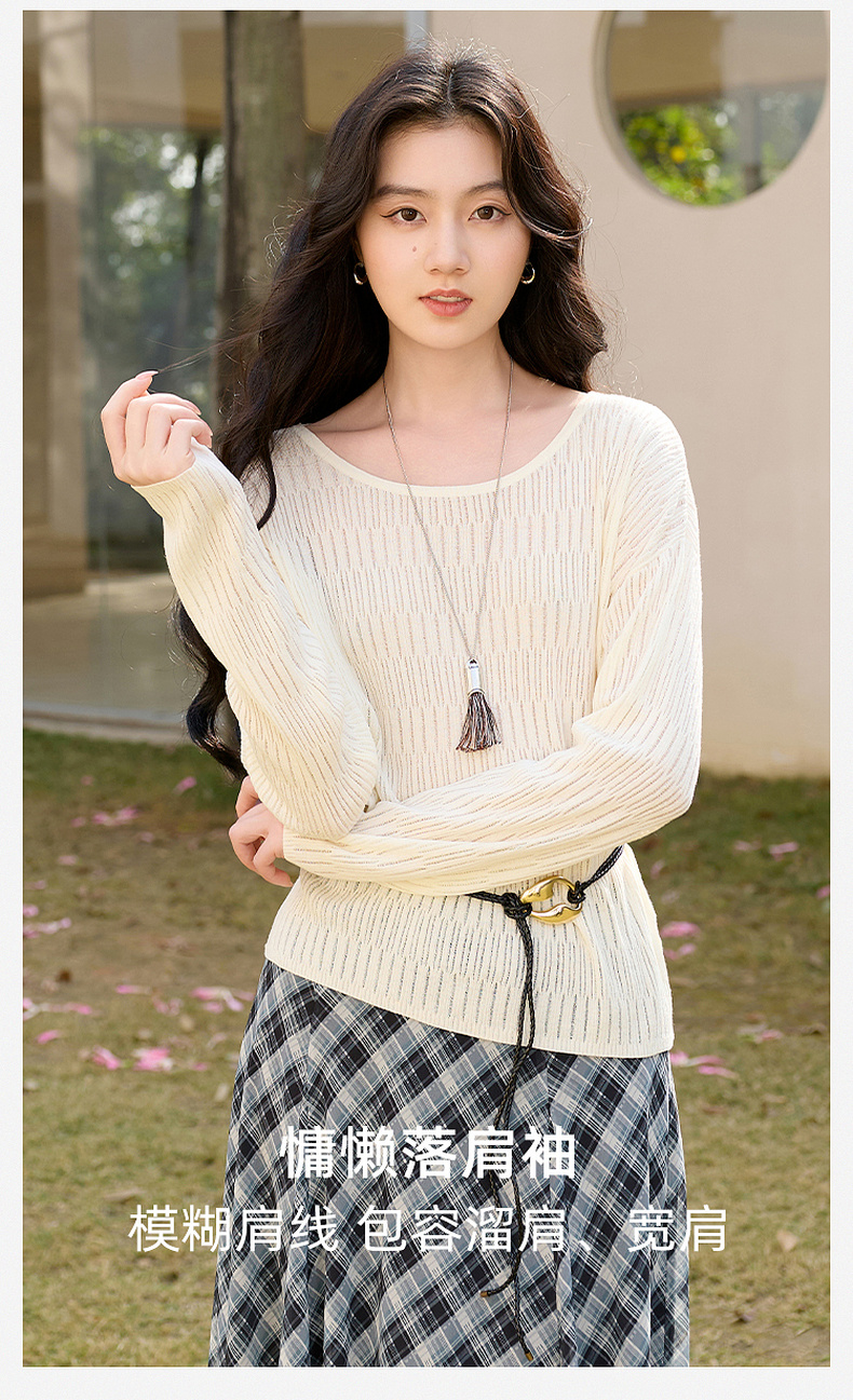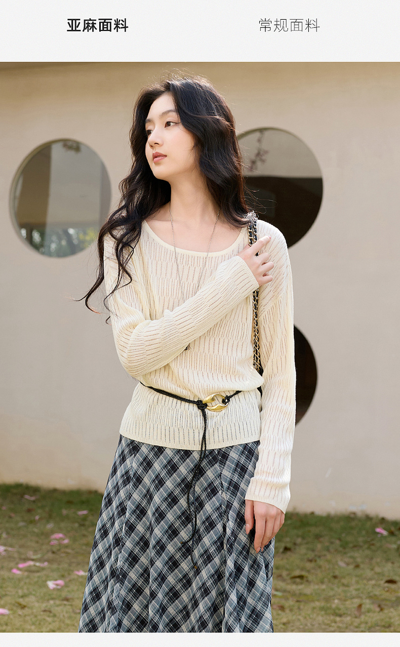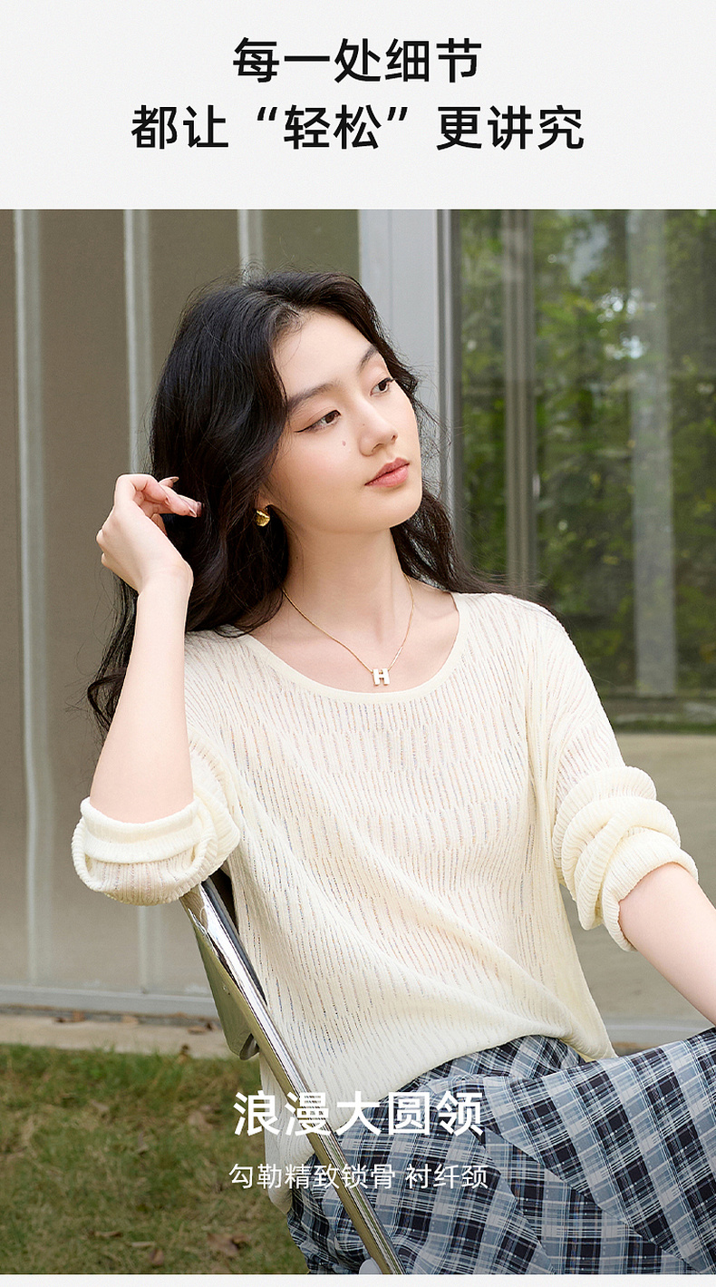 【莱赛尔亚麻】三彩2026春季新款镂空罩衫圆领针织衫毛衫套头S