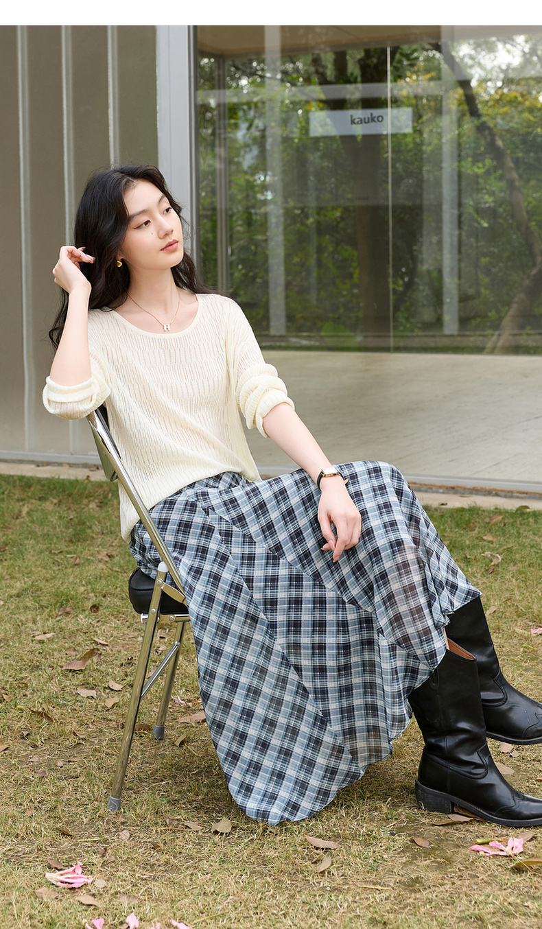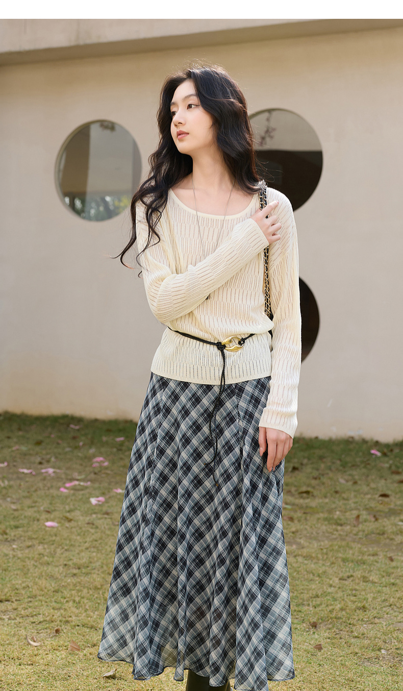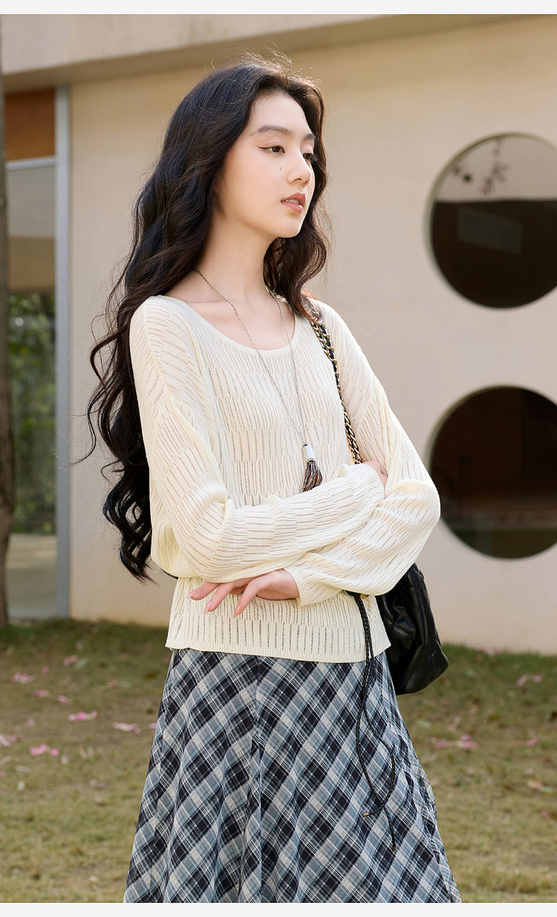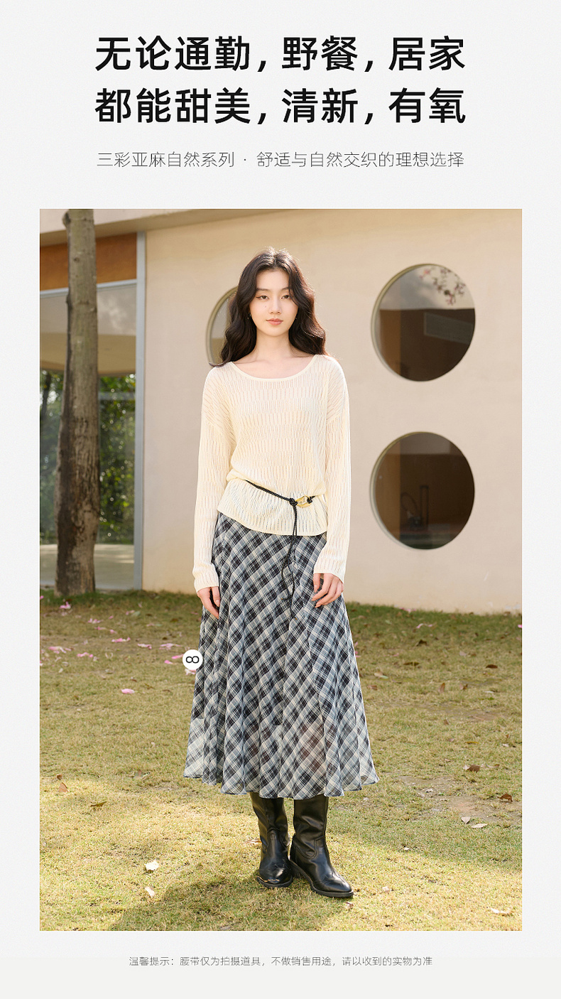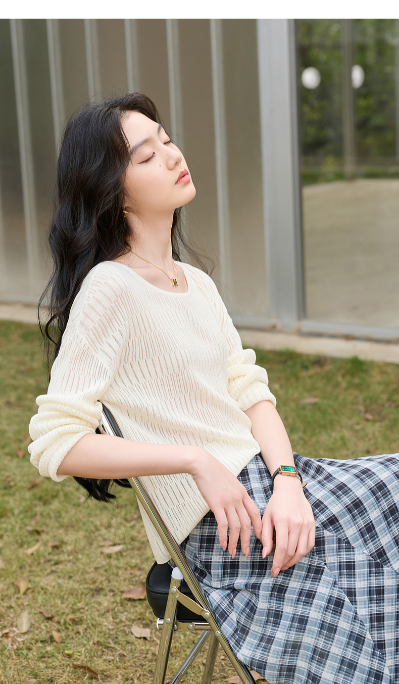 【莱赛尔亚麻】三彩2026春季新款镂空罩衫圆领针织衫毛衫套头S