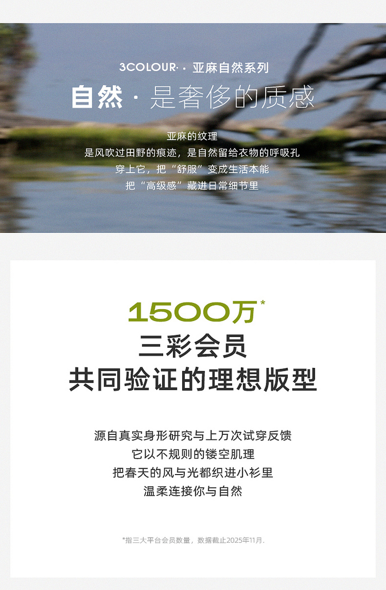 - 3COLOUR,一直致力于探索自我与时尚审美,用穿衣哲学折射生活主张,在流动中探寻恒久。