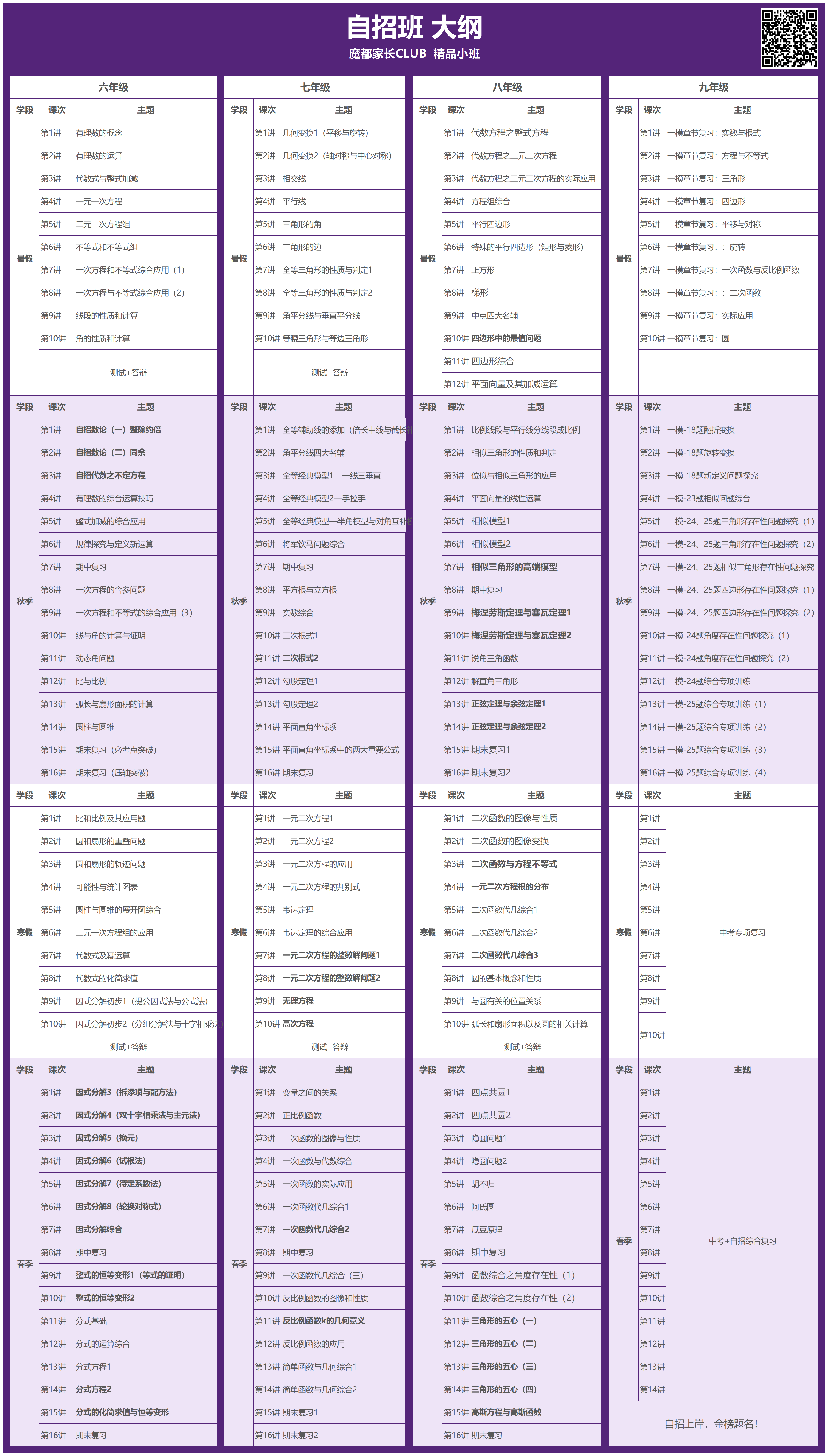 💕6~8年级,完成初中课内拔高+自招所有内容。聚焦“拔高进阶+自招奠基”双目标,构建完整且扎实的初中数学知识体系与解题能力框架。