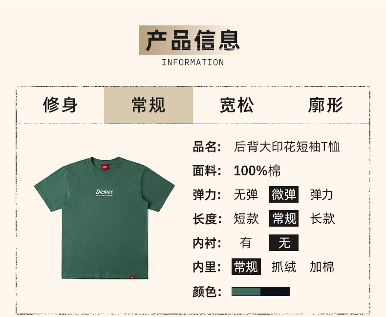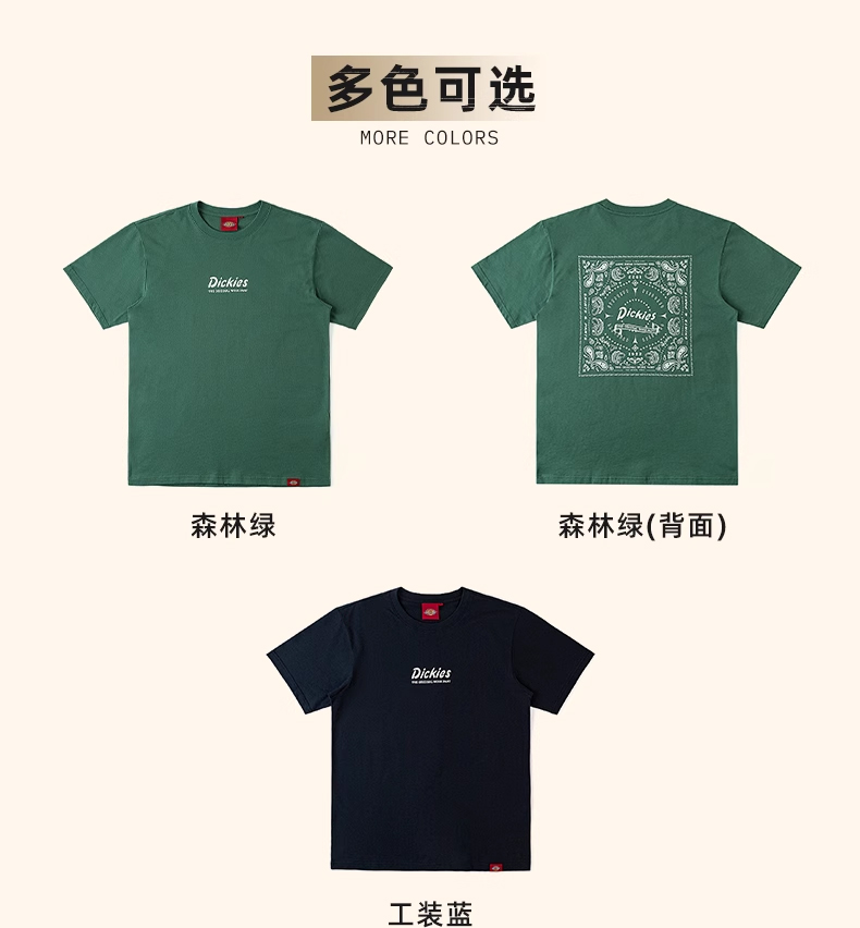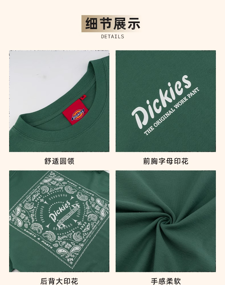 Dickies短袖t恤男女同款美式复古印花圆领宽松休闲半袖上衣DK0A87MH