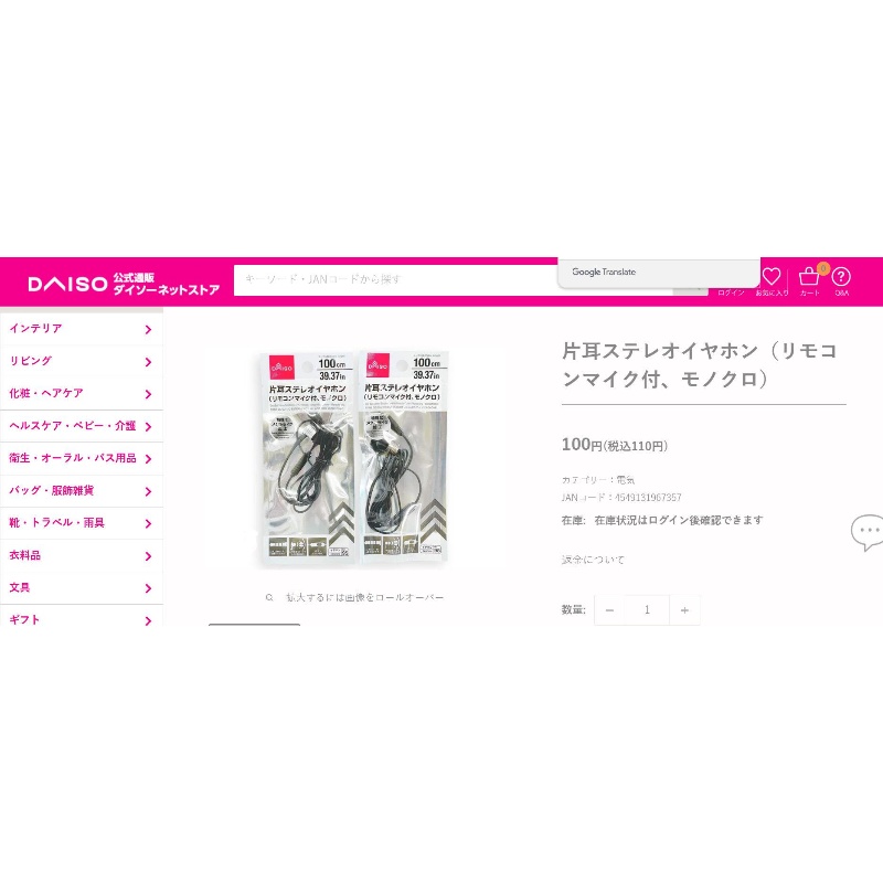 日本 DAISO大创百货 3.5mm插口入耳式单耳有线耳机COLORIDO(1米)