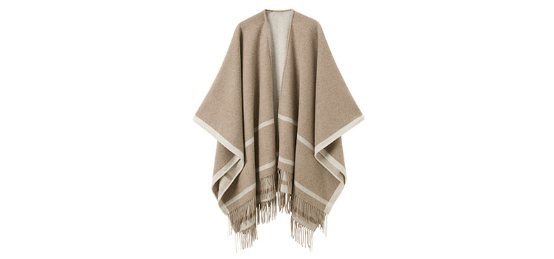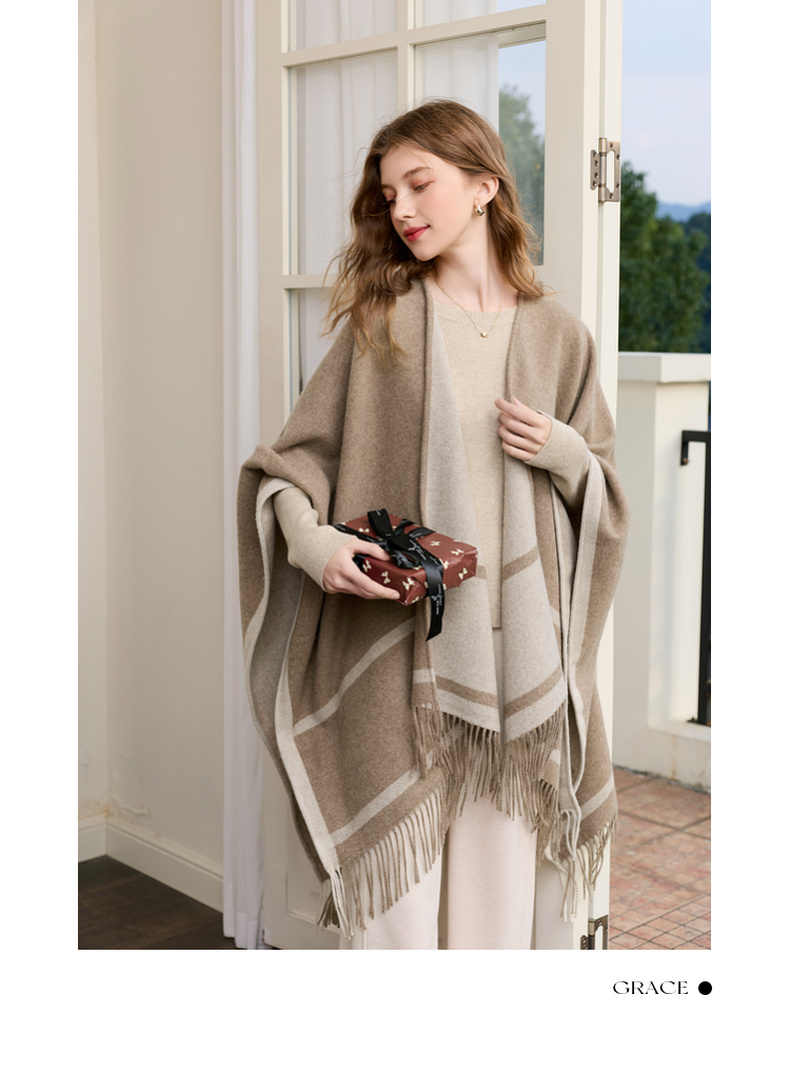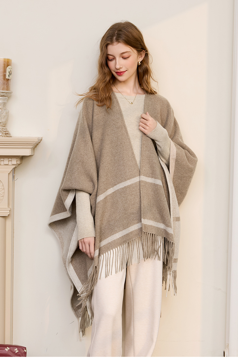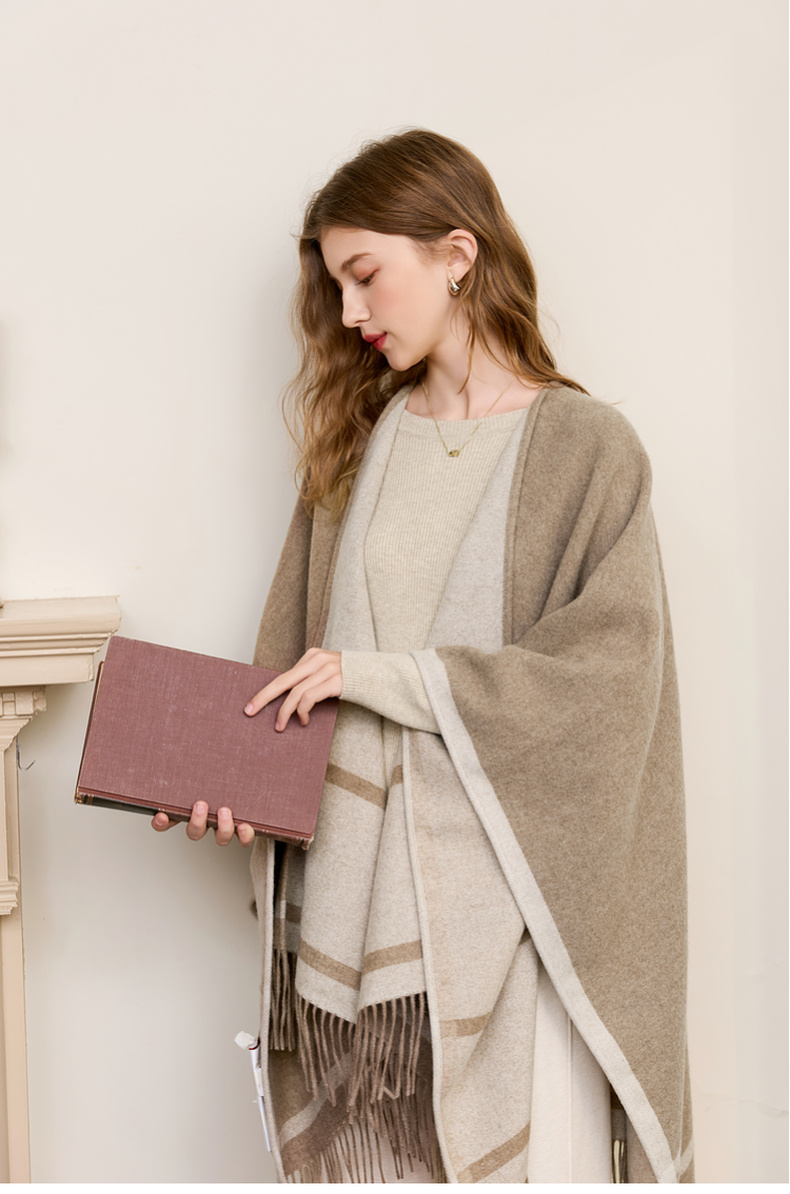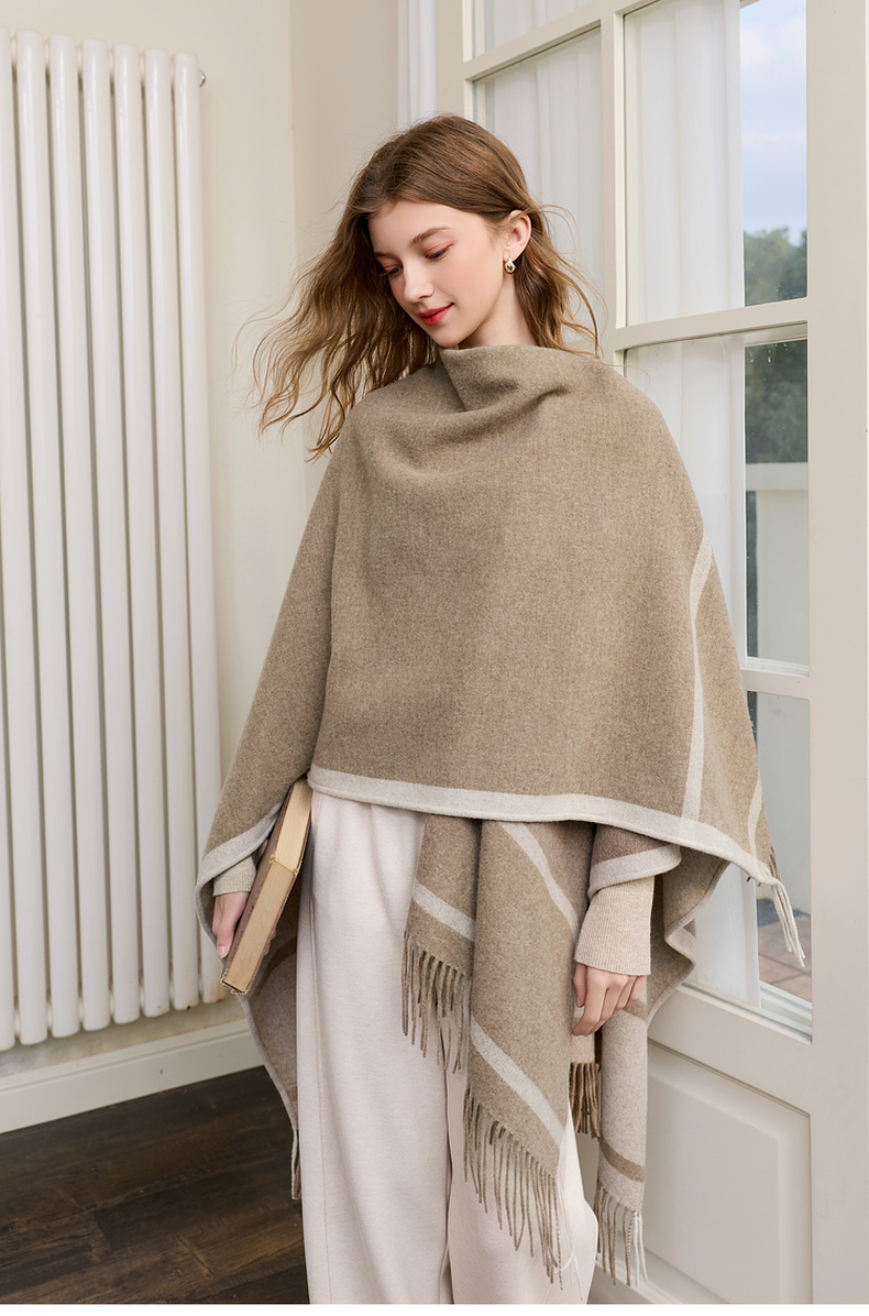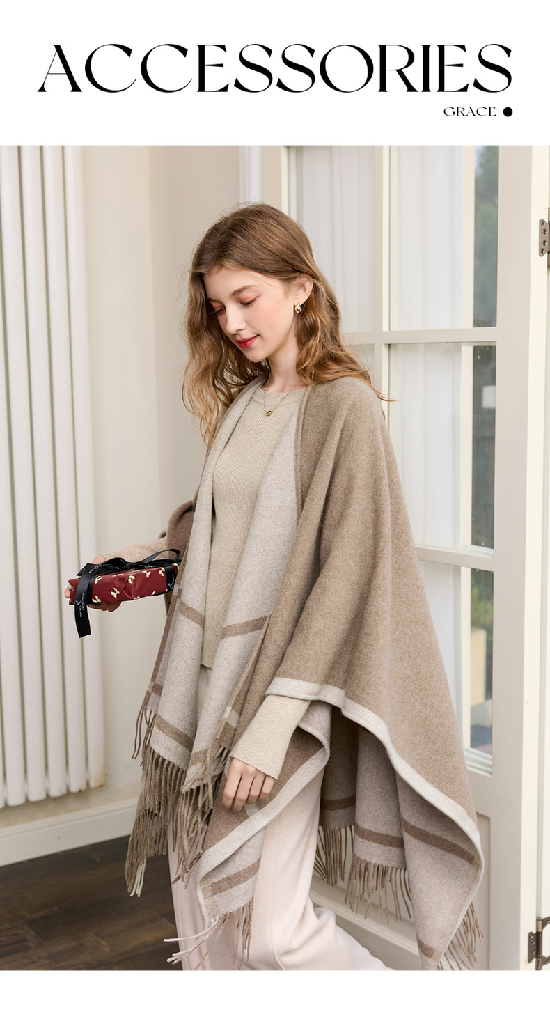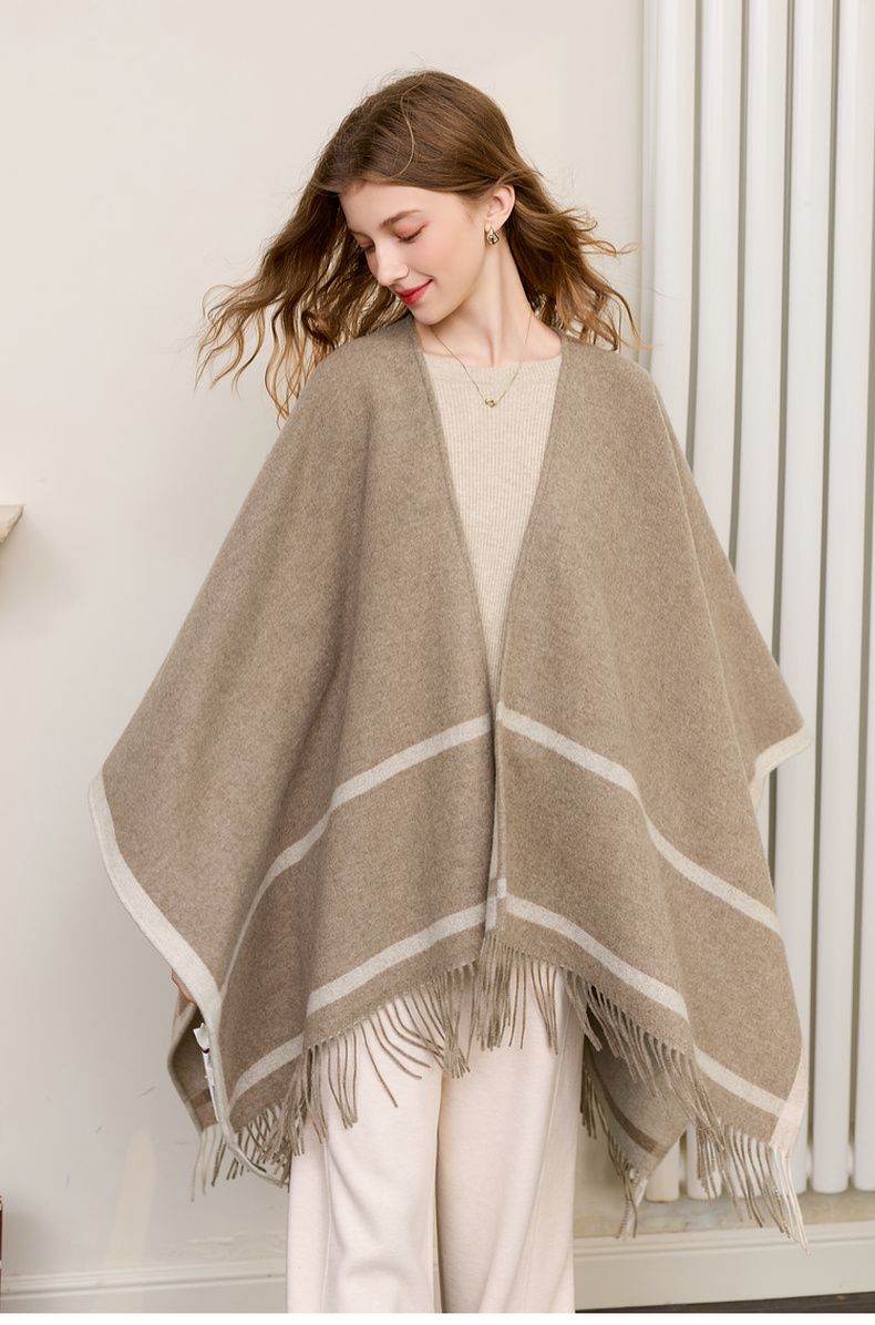 【100%绵羊毛】三彩2026新款极简条纹披肩流苏复古氛围感慵懒通勤