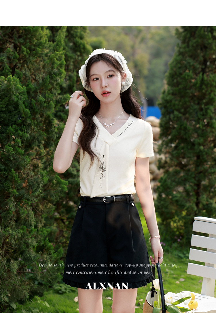 鹿向南「菲林假日」百搭黑色花边阔腿短裤女装夏季高腰外穿休闲裤