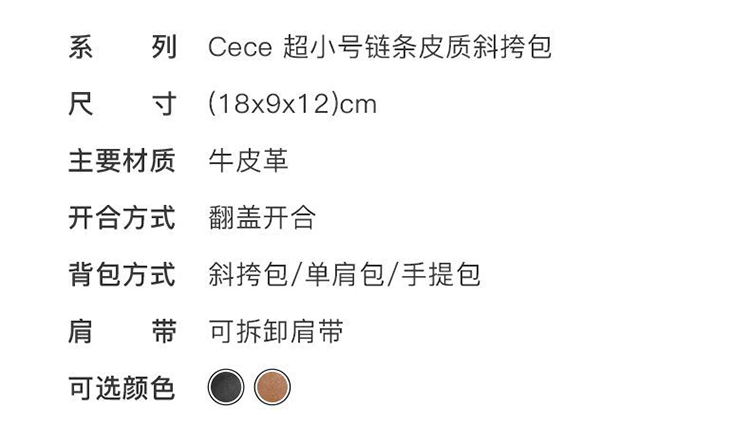【品牌】MK Cece 超小号经典纯色皮质链条单肩斜挎包橡果棕