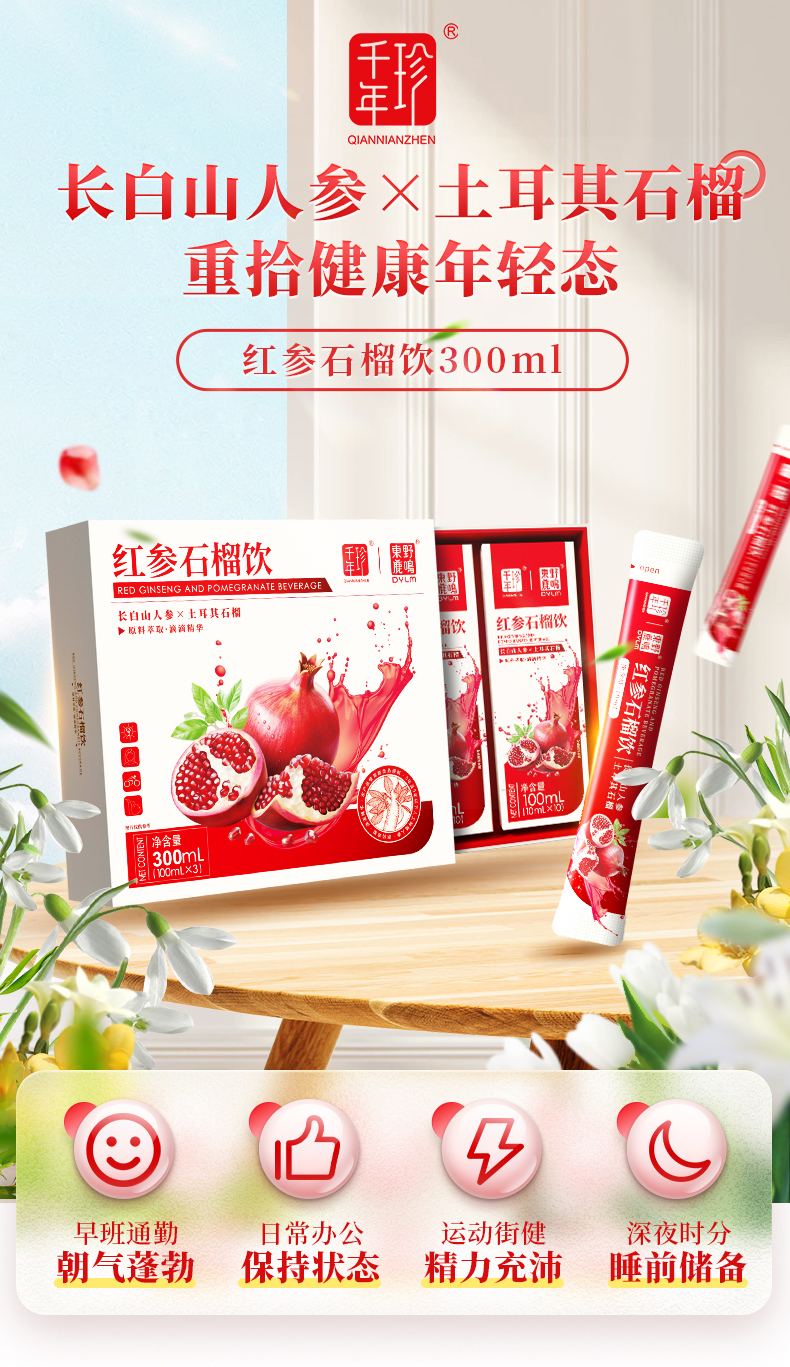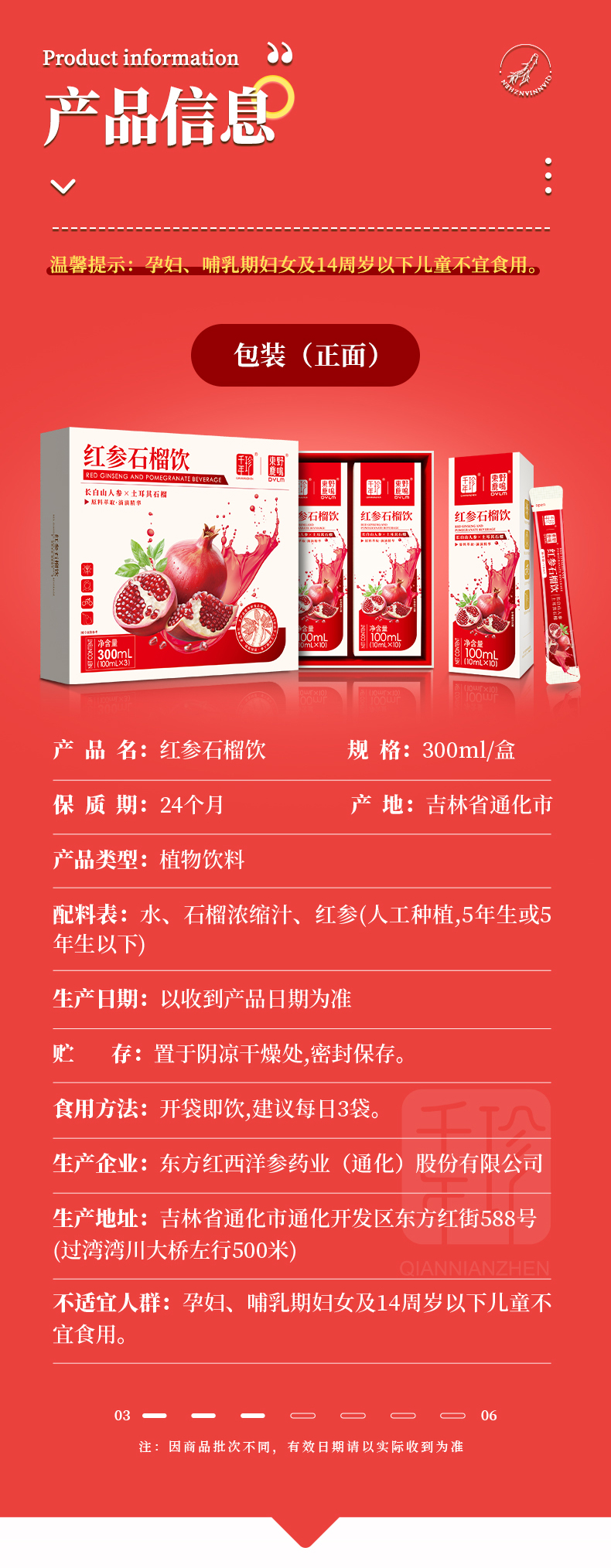 千年珍红参石榴饮300ml(10ml*10袋*3盒)
