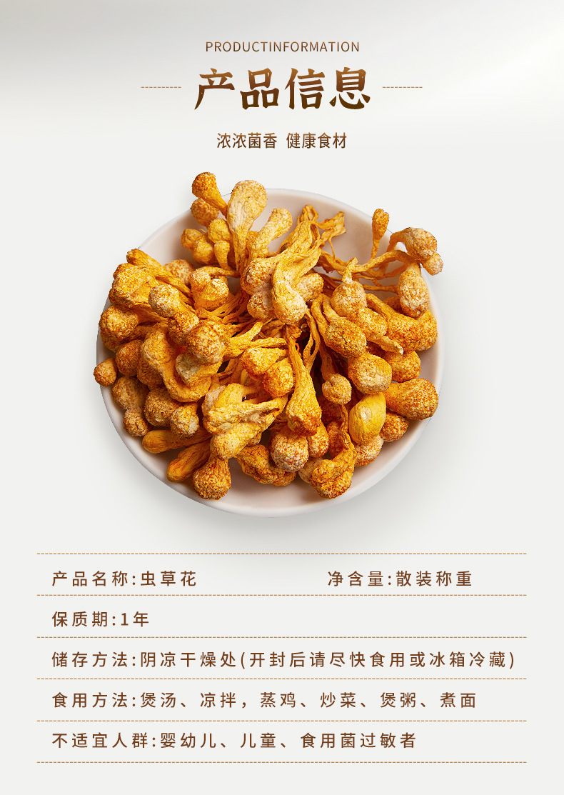 【家庭必备❗️特级虫草花】严格甄选,营养价值更高,富含大量矿物元素,特级不熏硫孢子头,菌菇补品煲汤,蛹虫草花食用菌L