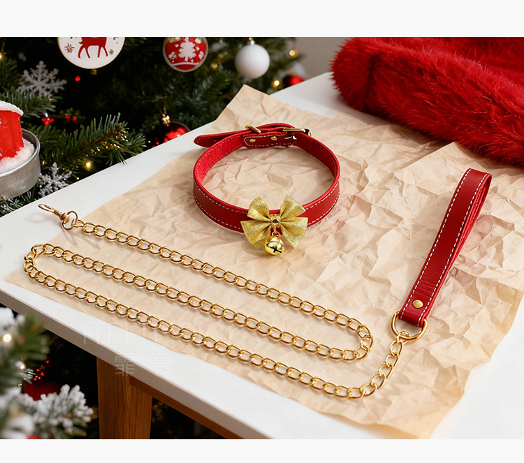 【情趣内衣】霏慕 圣诞颈环可拆卸牵引一体链7617
