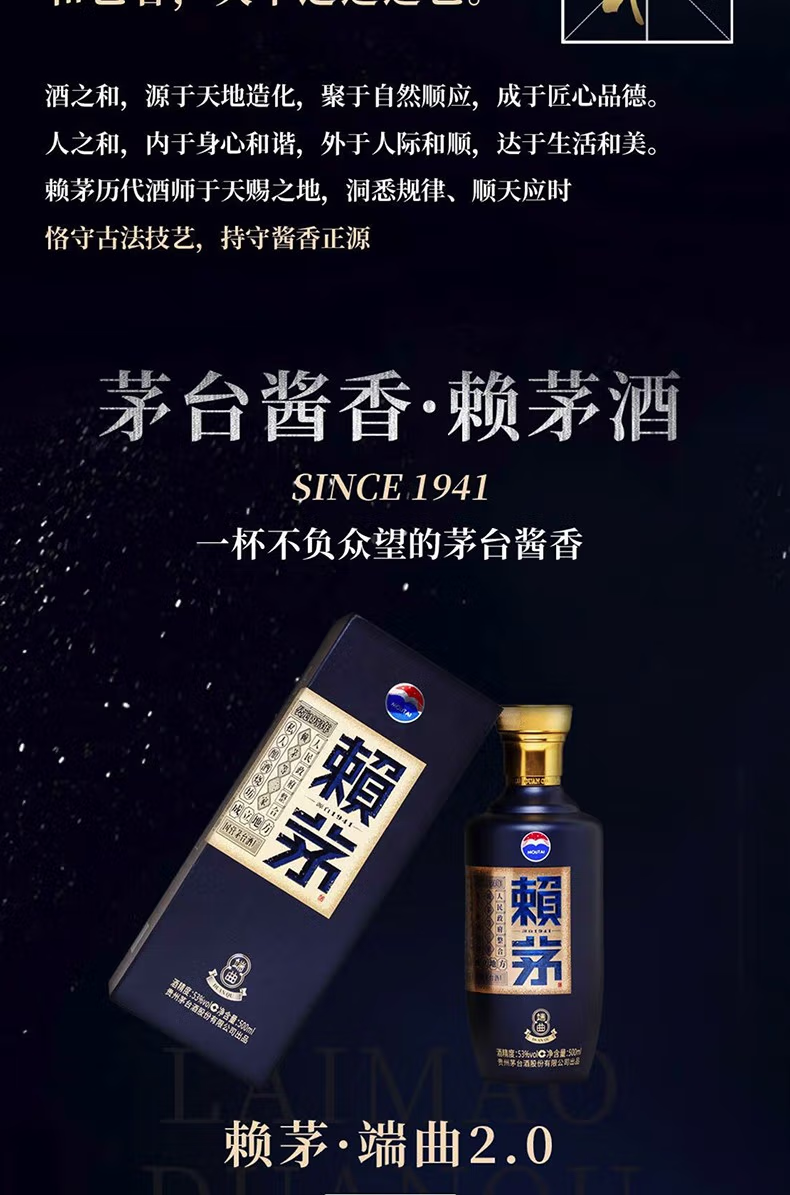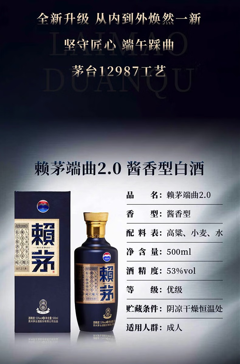【会员福利】赖茅 茅台 赖茅 端曲2.0 酱香型白酒 53度 500ml*6原箱