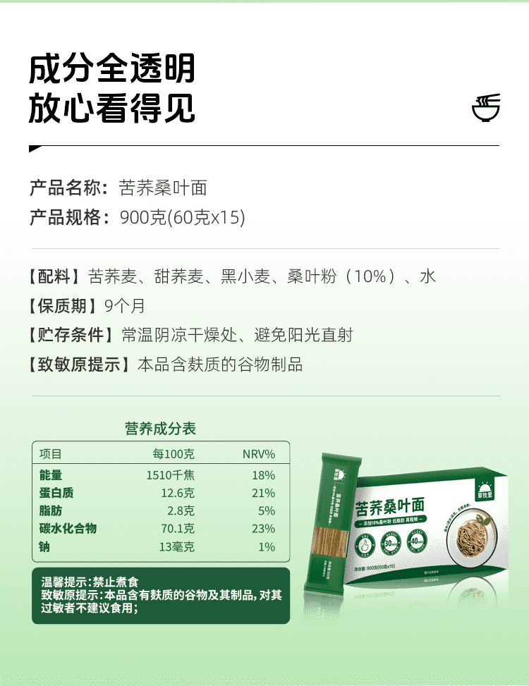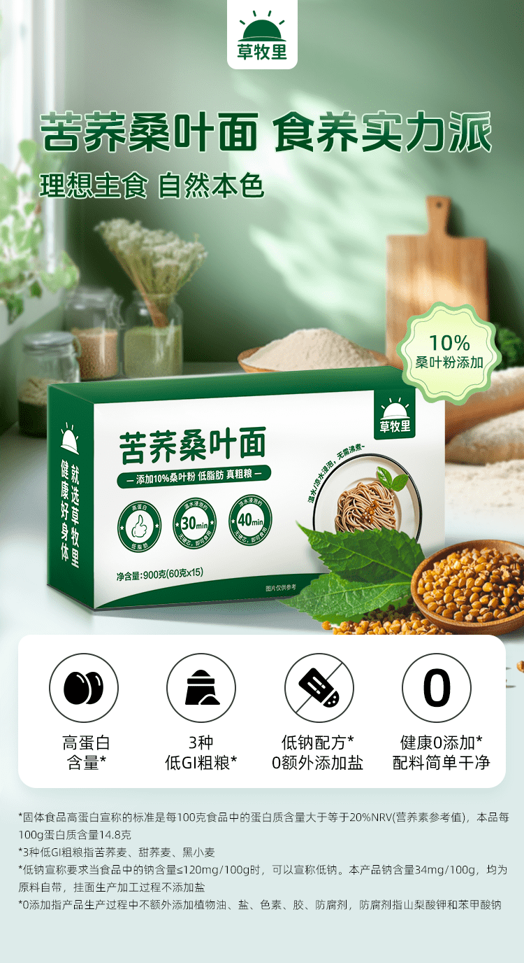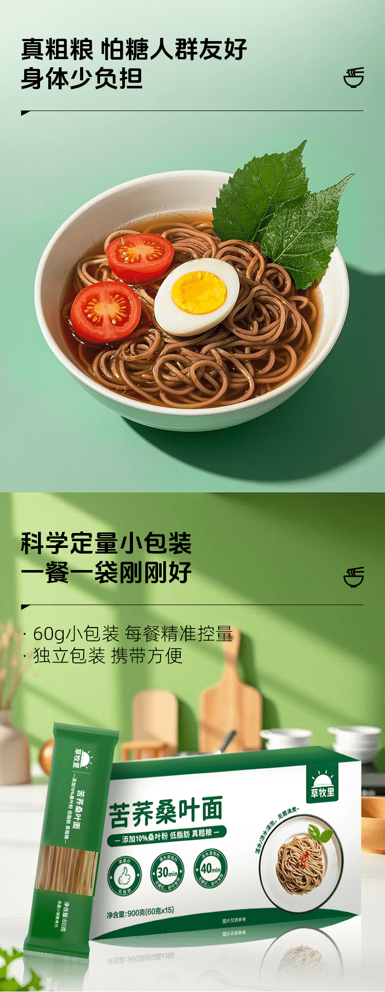 【粗粮配方】草牧里 苦荞桑叶面 900g/箱 (60g*15)3种低GI友好食材搭配桑叶营养