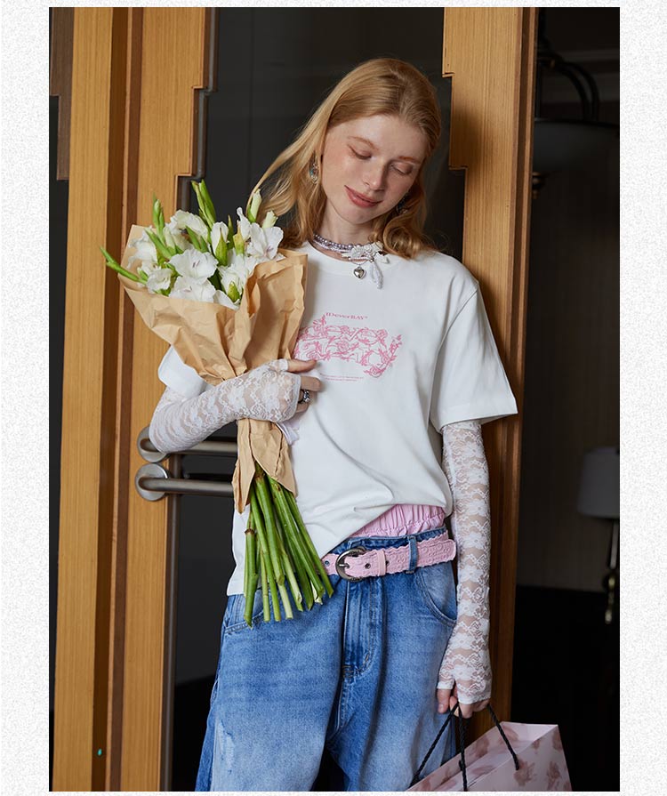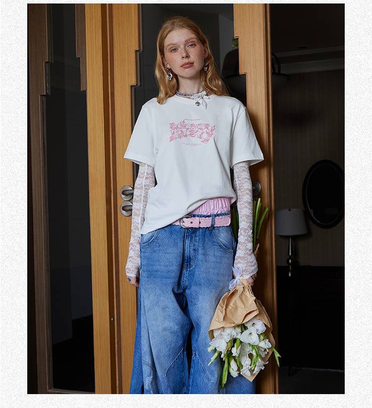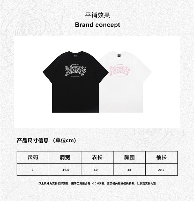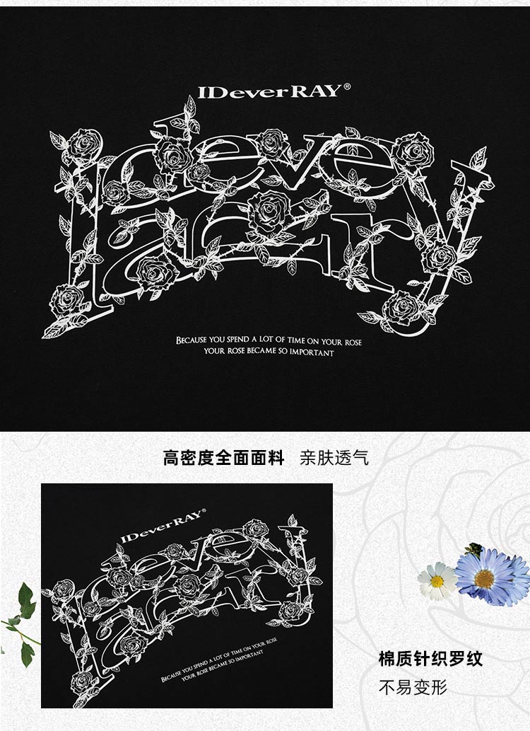 【明星同款】IDEVERRAY夏季2025新款花卉字母印花休闲情侣装圆领短袖男女士宽松t恤21MSL-ID25SSFAT008