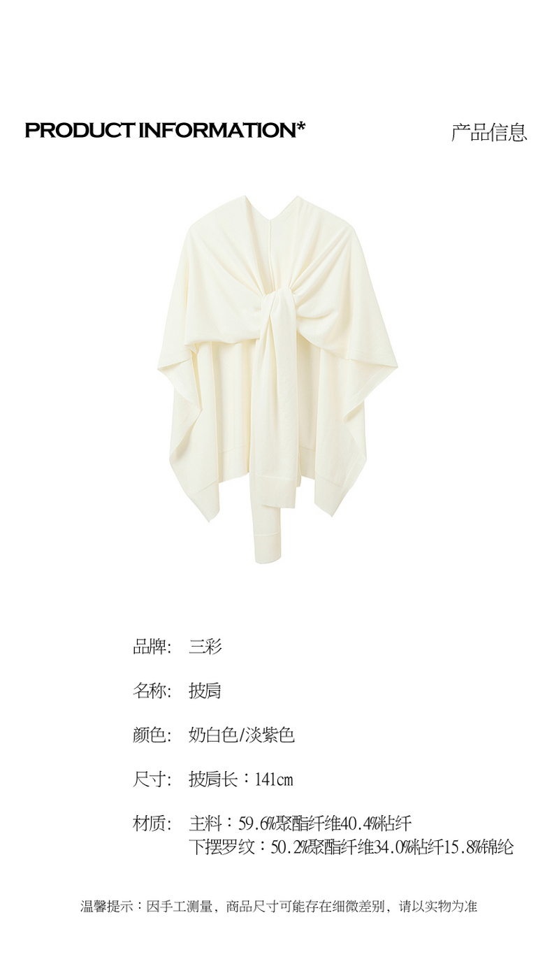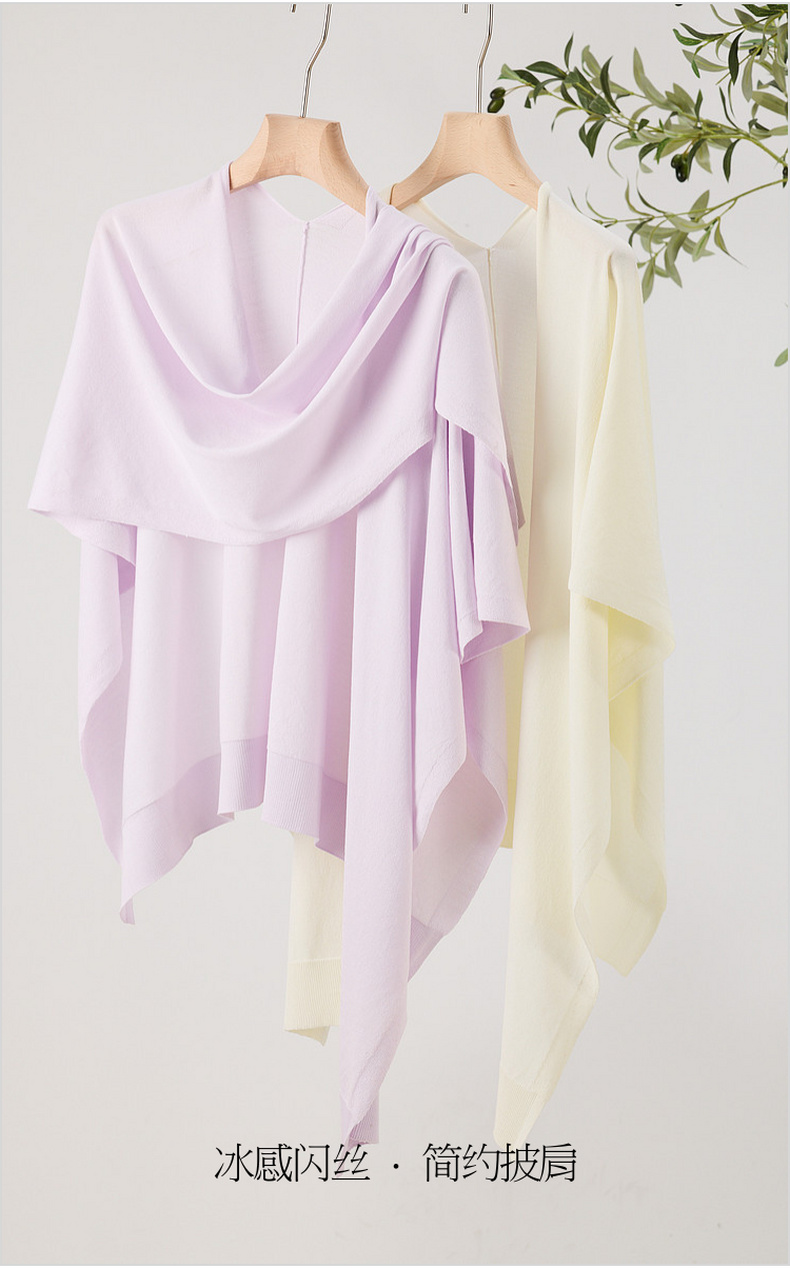 三彩2026新款冰感夏日轻薄针织披肩遮阳极简风通勤宽松廓形大气女