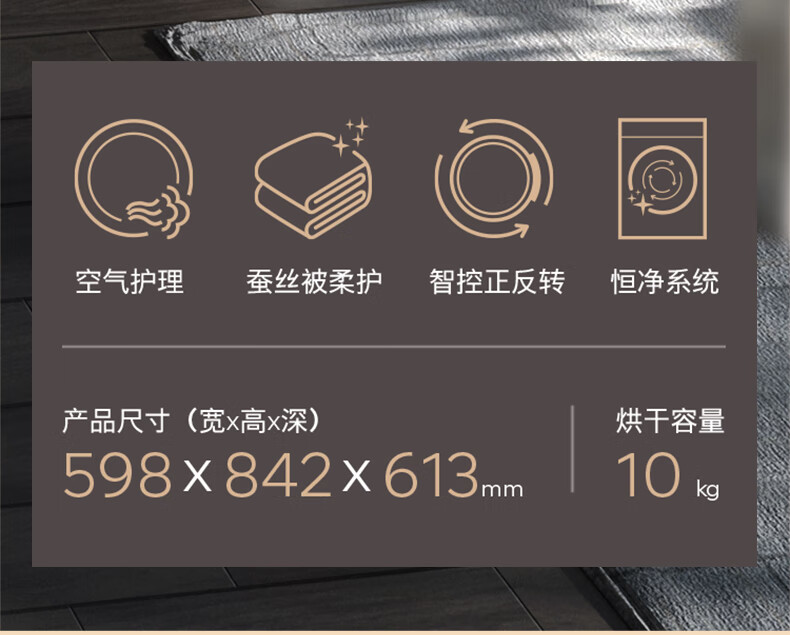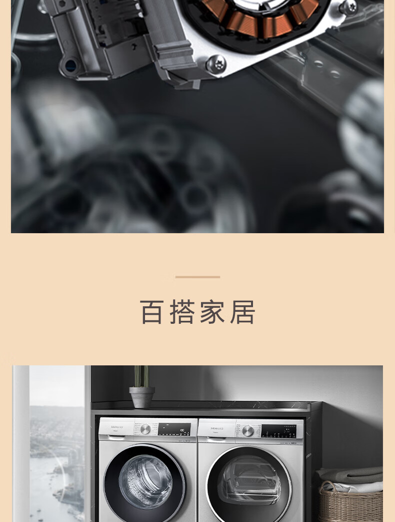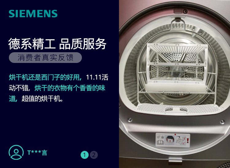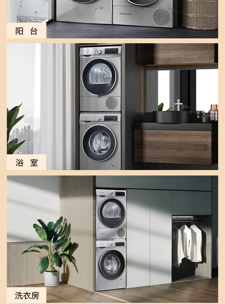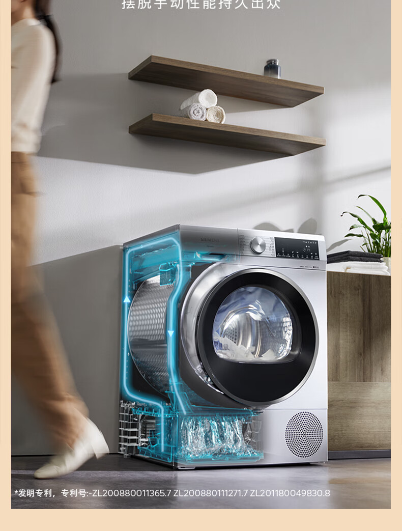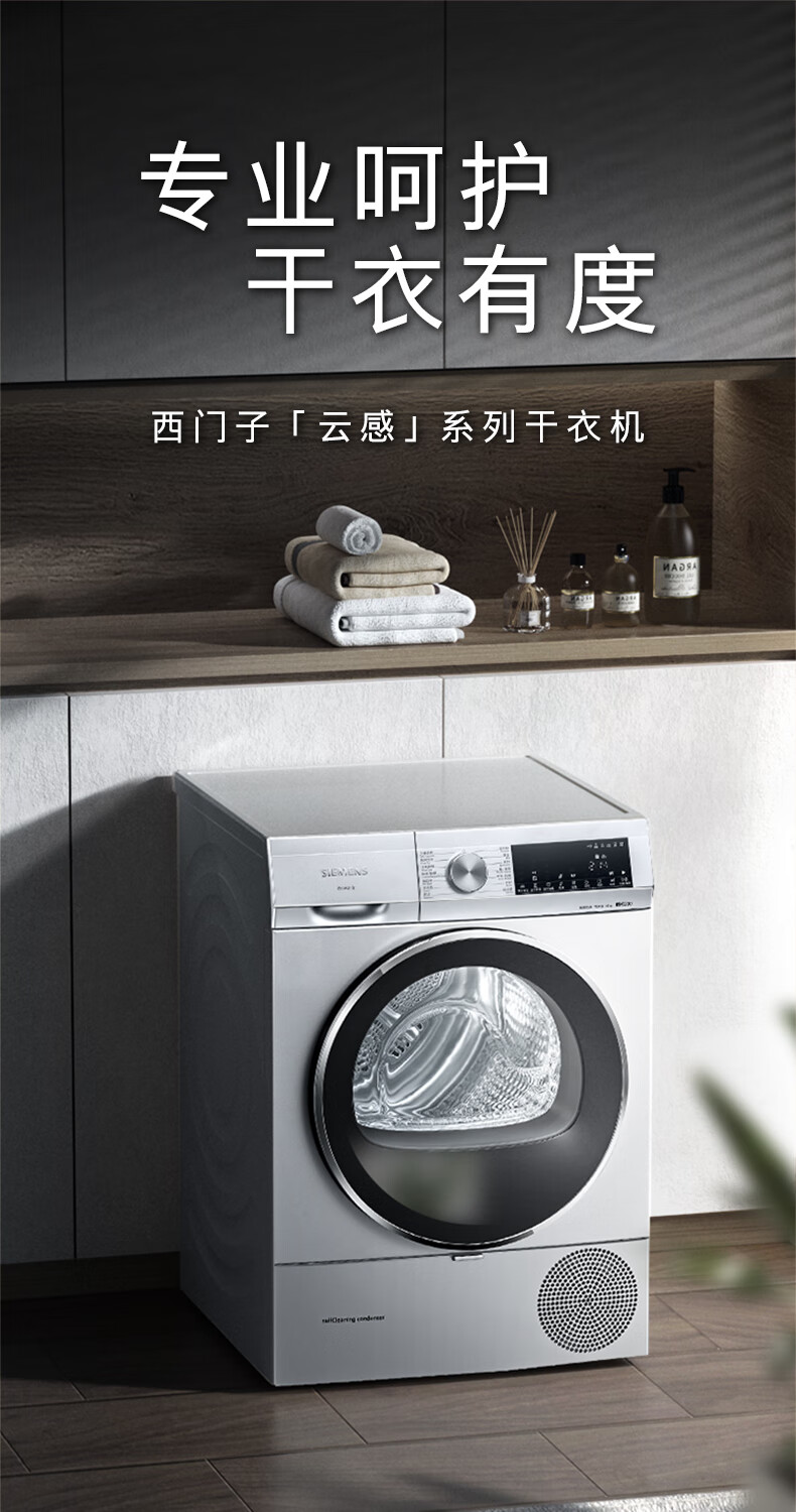 西门子(SIEMENS)WQ55A2D80W10公斤大容量热泵烘干冷风护理 除菌除螨 热风定时 自清洁 蚕丝被烘 银色 WQ55A2D80W