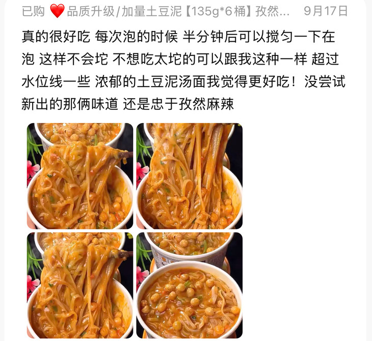 土豆泥细腻绵密,泡面的劲道又为整个口感增添了一份层次感。 一口下去,满满的都是幸福的味道! 我真的已经被它迷得不行啦,不说了不说了,我得赶紧再去屯了一箱!