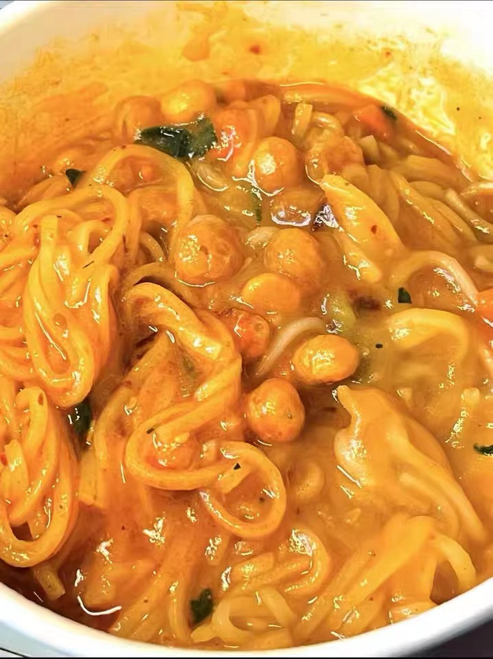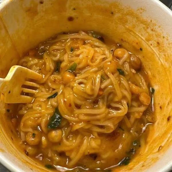 @这届网友真的好会吃!! 热水冲泡5分钟就可以吃啦!! !真的好还原夜市小摊的味道!! 而且面饼还是非油炸的! 都是优质碳水!!一碗下去真的贼抗饿!! 孜然麻辣味、火鸡味 2种口味都好吃😋