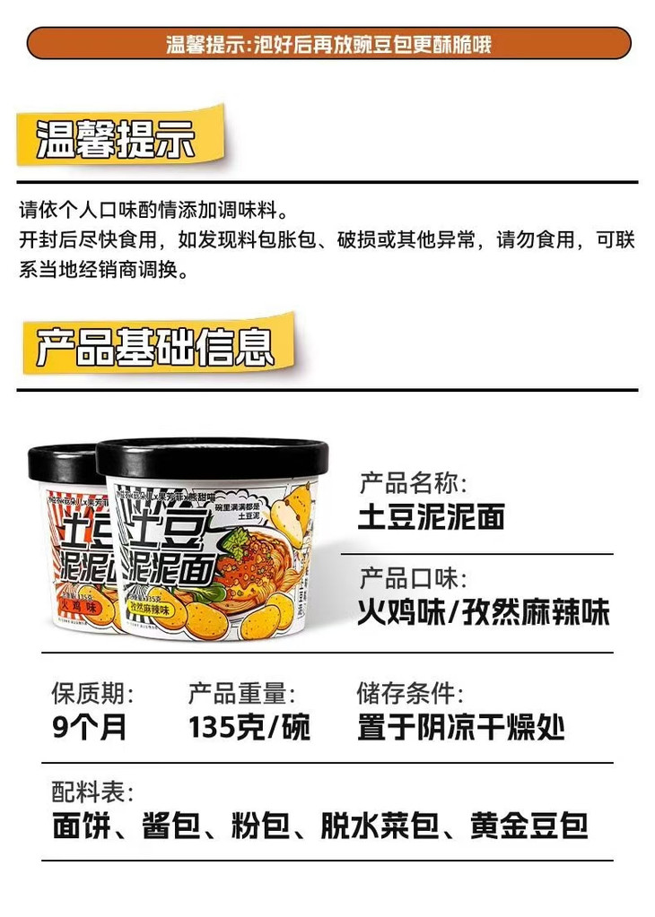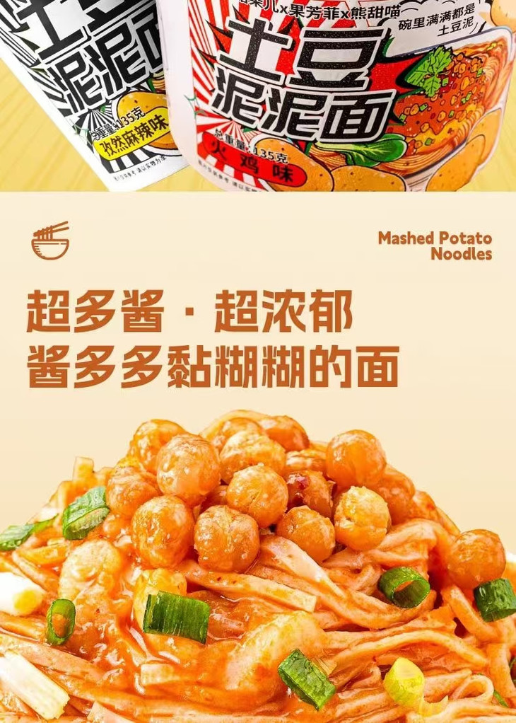 📢📢📢【土豆泥泥面】29.9/6桶⚡在家也能吃到了!碳水/土豆脑袋推❗ ✅土豆泥➕面条的全新搭配,双重碳水冲击味蕾 ✅酱多多、黏糊糊,每一根面条都裹满土豆泥🥔 ✅5分钟冲泡即食🔥免煮免洗