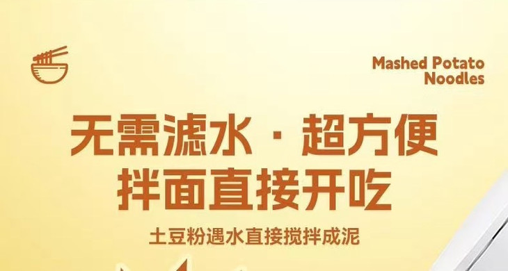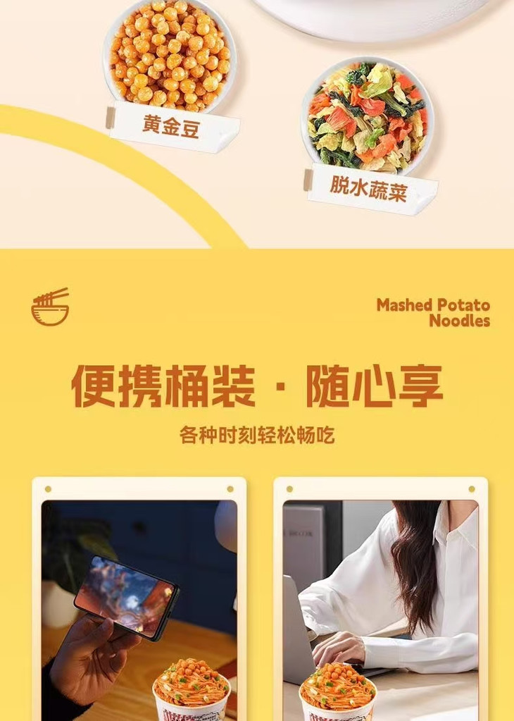一桶面5包料,更过瘾 5⃣分钟冲泡即食,公司同事吃过就没有说不好吃的! 土豆泥遇水直接搅拌成泥,无需滤水,拌面直接开吃 奶粉级土豆泥配着鲜面口感的面饼🥔 🍚一口双倍碳水的快乐! 宿舍党/上班族午餐、晚餐、宵夜轻松搞定✅