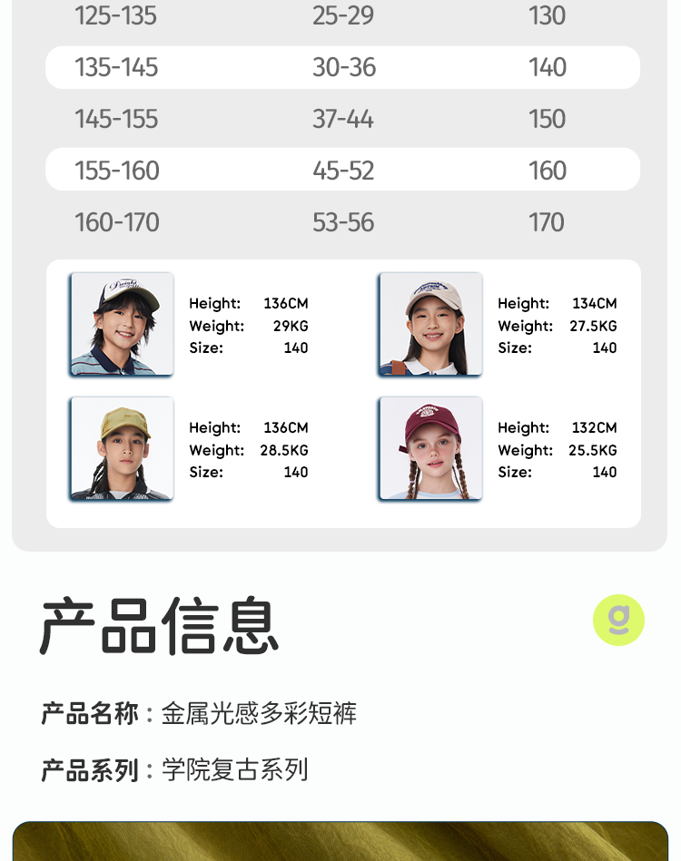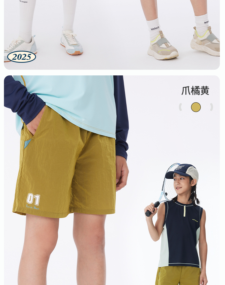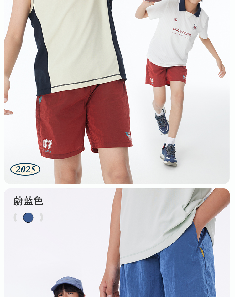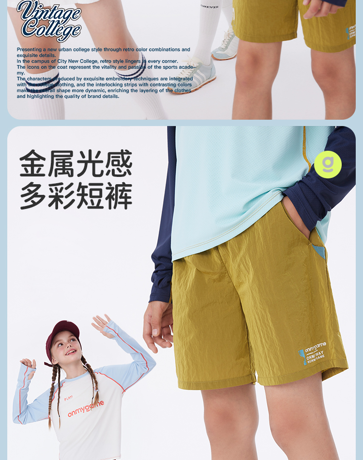 onmygame【金属光感】男女童多彩短裤儿童运动裤子2025年夏季新款
