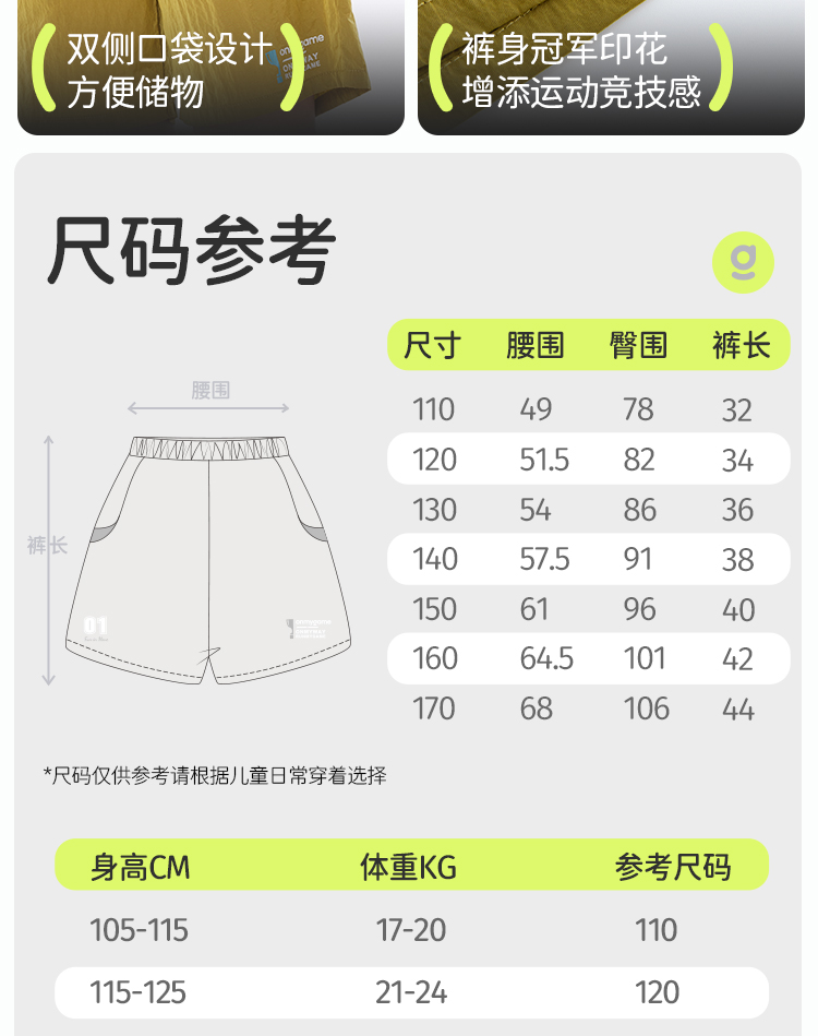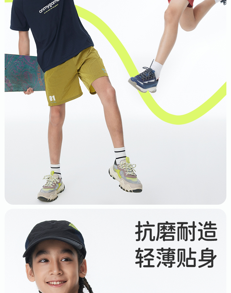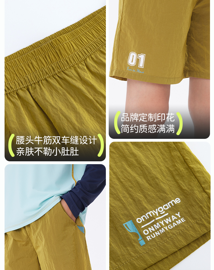 onmygame儿童运动短裤男童弹力五分裤夏季体能训练裤轻薄透气