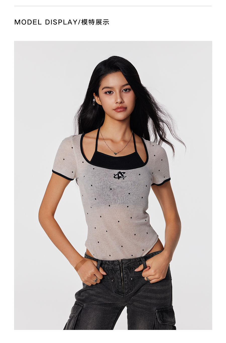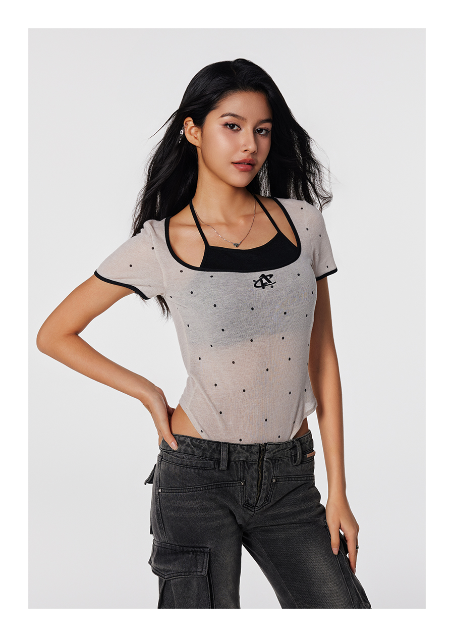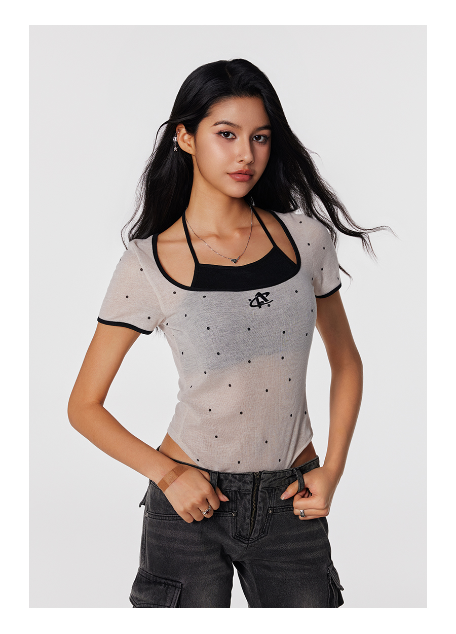 【Achock官方店】高街辣妹纯欲风假两件短袖T恤潮牌夏款吊带背心