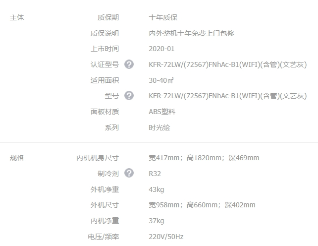 格力/空调/KFR-72LW/(72567)FNhAc-B1时光绘变频柜机文艺灰
