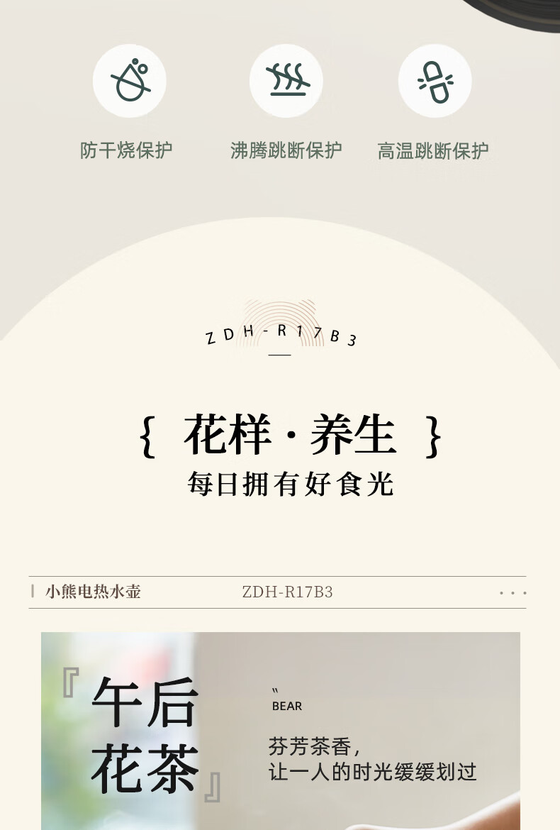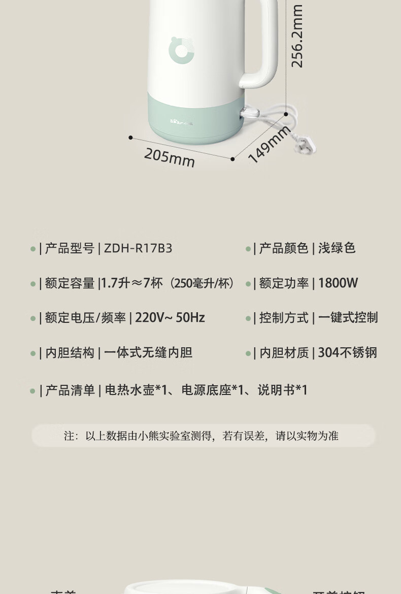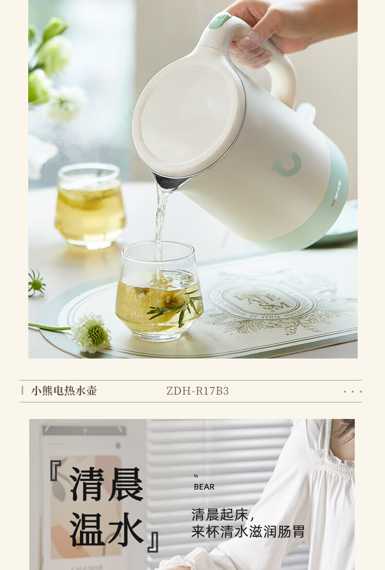 小熊(Bear)小熊(Bear)烧水壶 电水壶热水壶电热水壶烧304不锈钢 双层防烫开水壶1.7L ZDH-R17B3