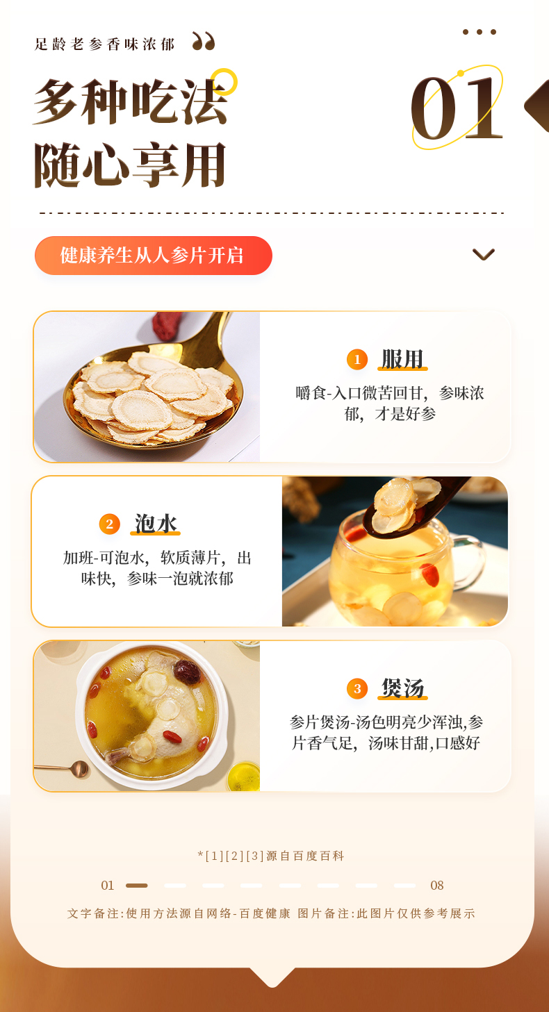 50g/盒 人参蜜片(S级)泡水即食鲜参人参切片泡茶煲汤参片