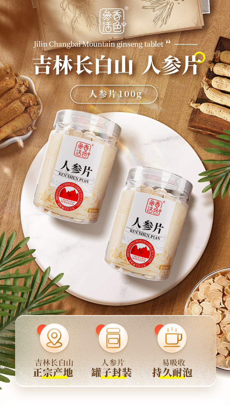 100g/瓶 参香活色 正宗长白山人参片 多规格可选
