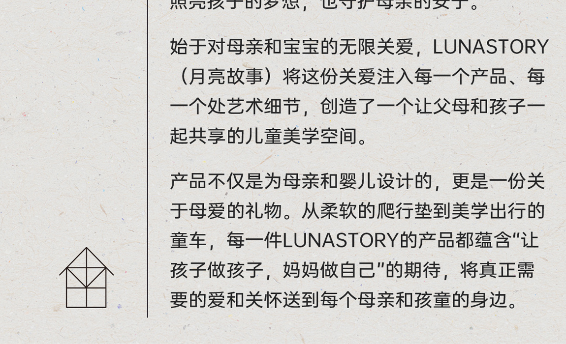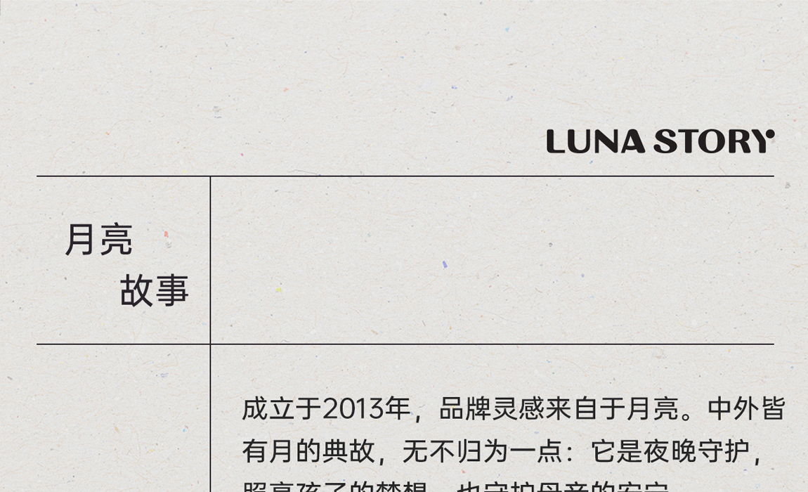 - Lunastory是2017年全新推出的母婴用品高端品牌,致力于维护孩子的安全与健康。以父母之心,开发多种母婴用品,目标是让客户只用Lunastory就能打造出温馨的儿童房。