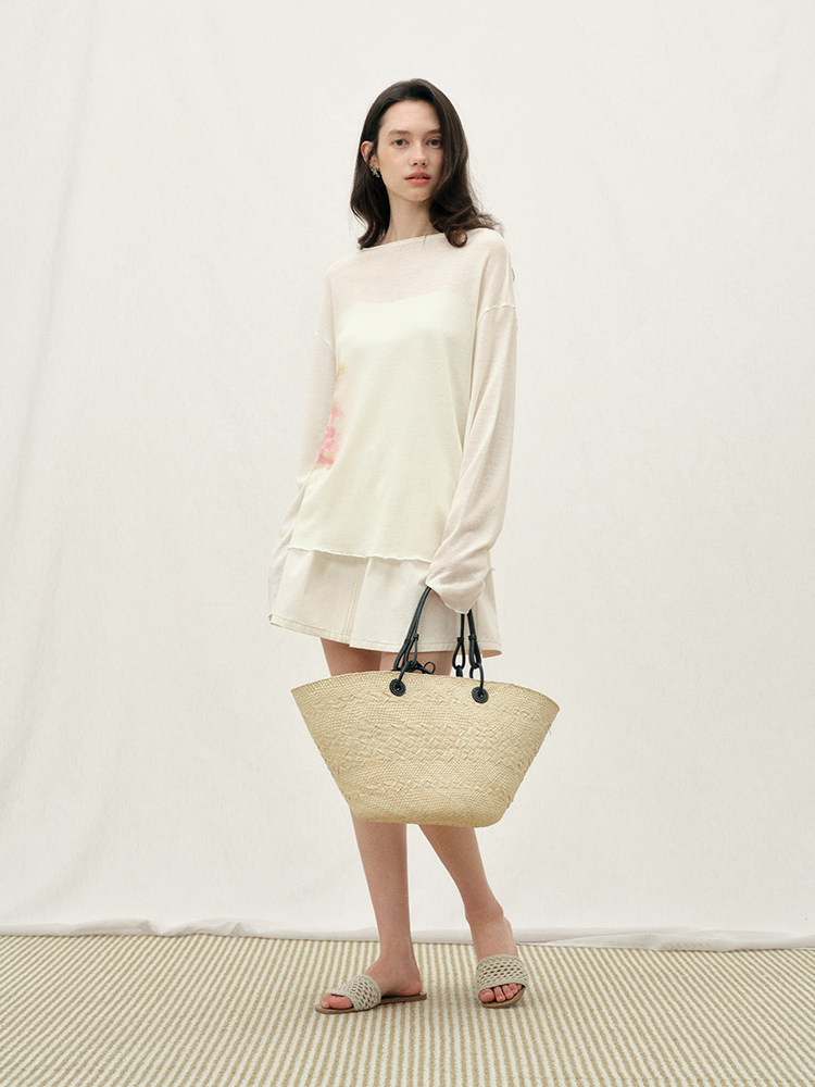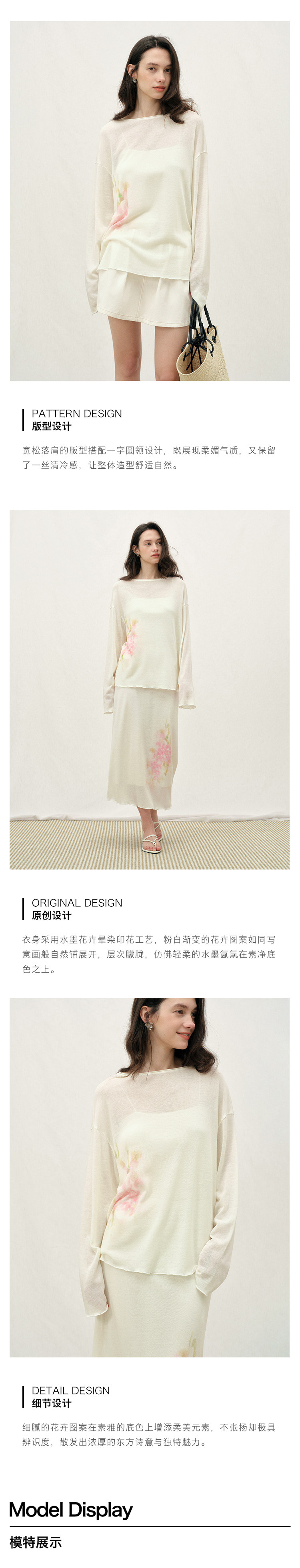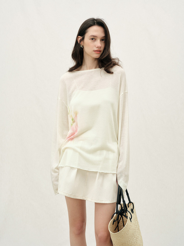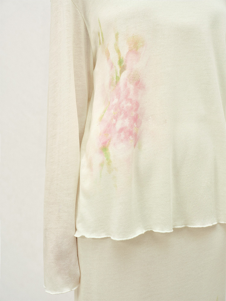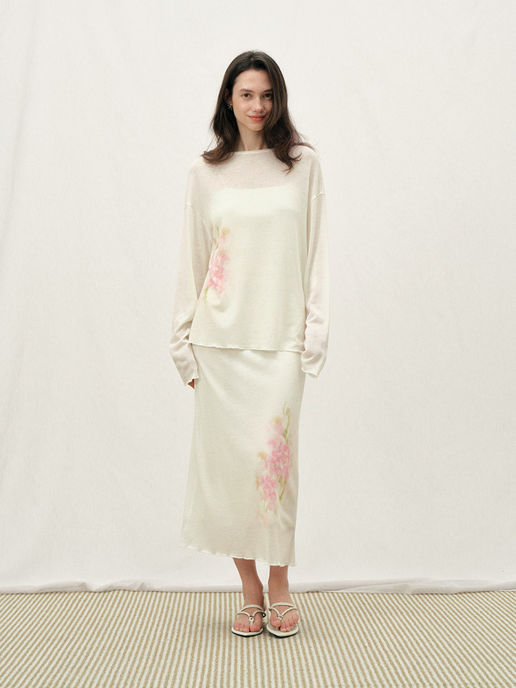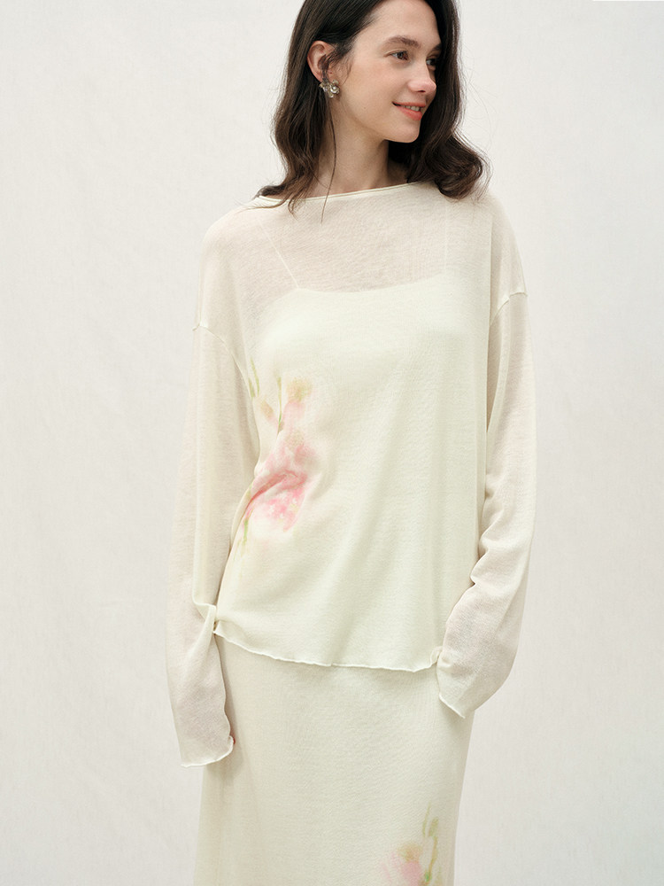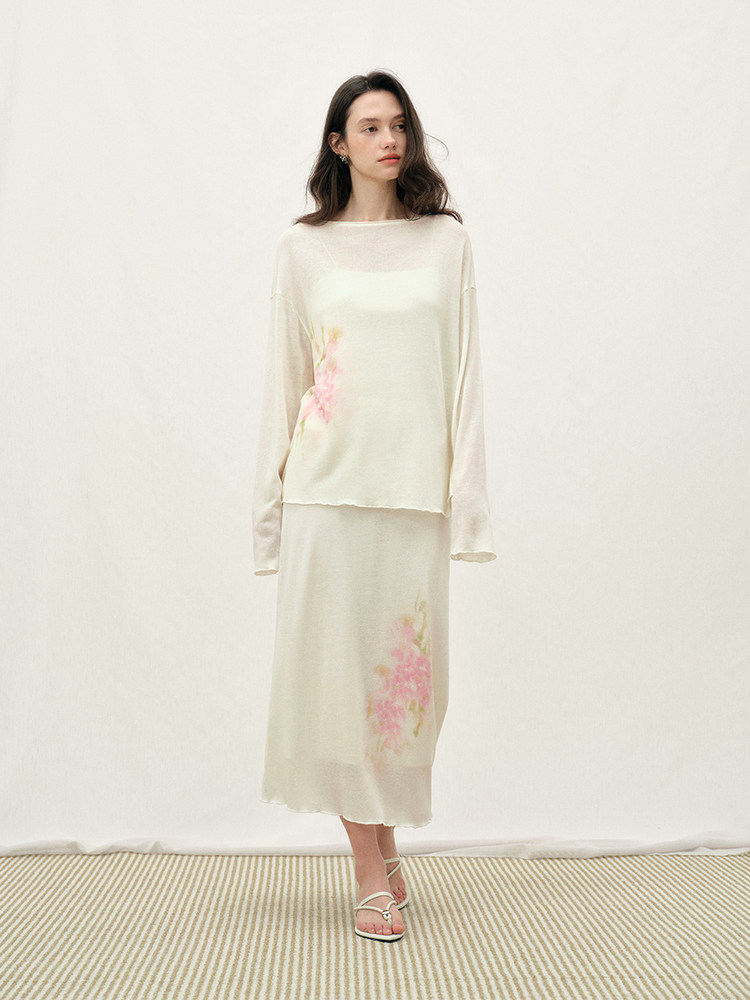 ForPoem 26/SS 原创设计写意花卉印花套装上衣宽松一字圆领长袖女