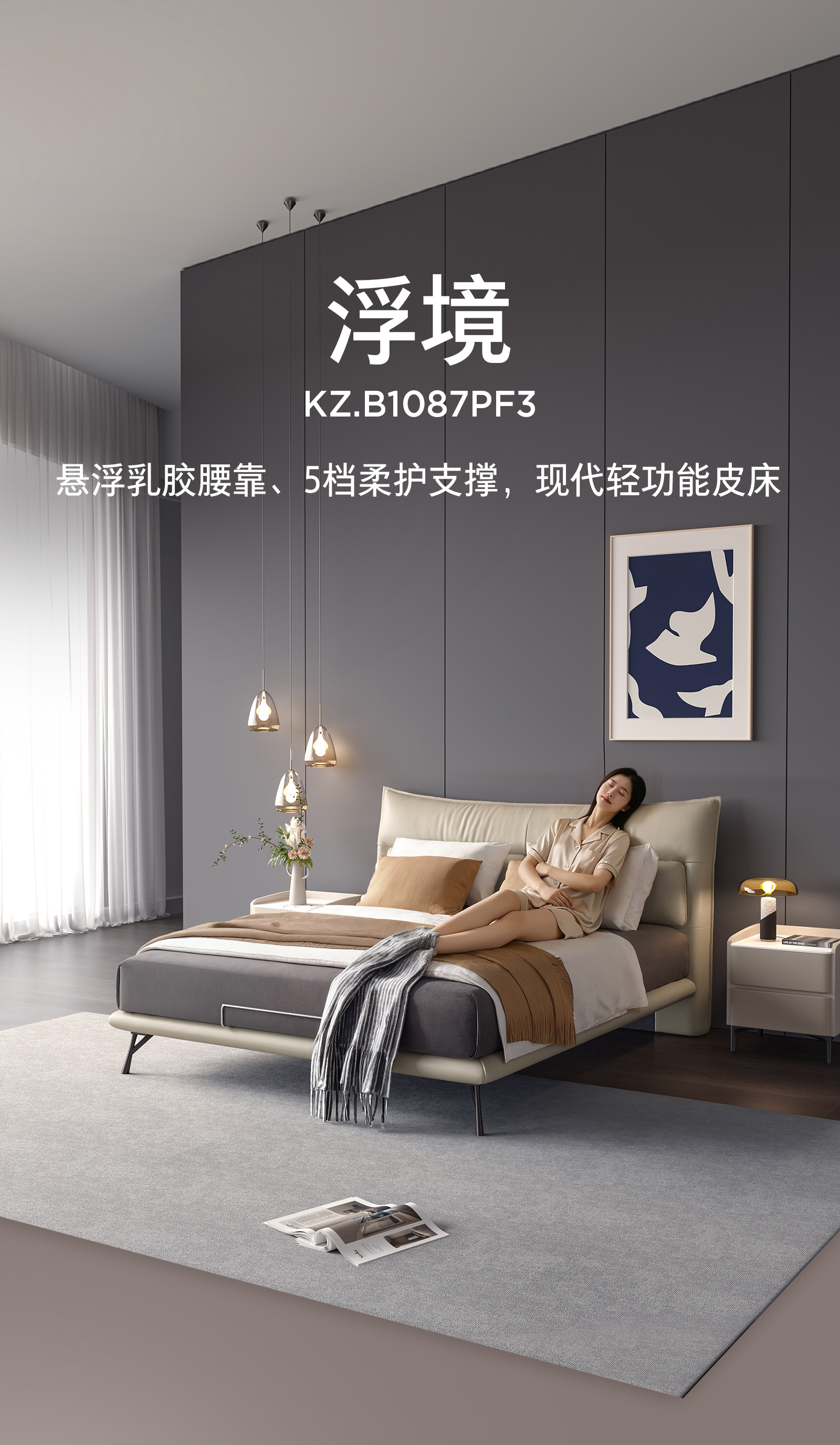 顾家家居整装 现代时尚 皮艺床KZ.B1087PF3浮境