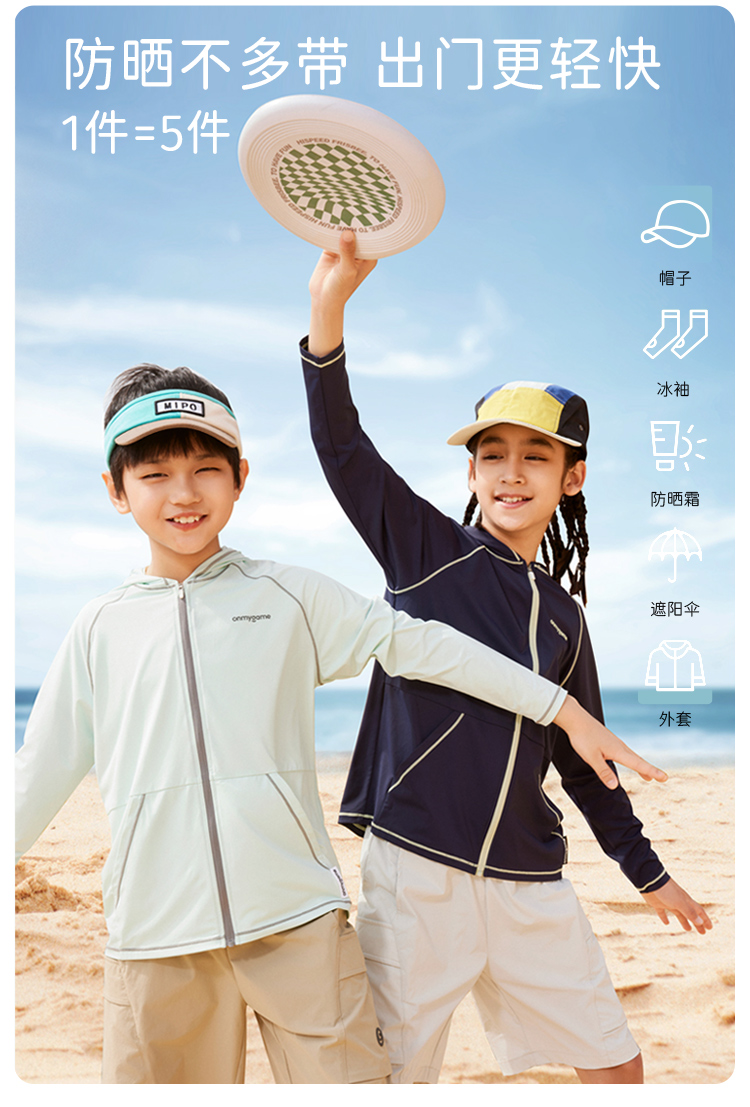 onmygame 儿童防晒衣男童夏季防晒服UPF50+防紫外线海边女童外套