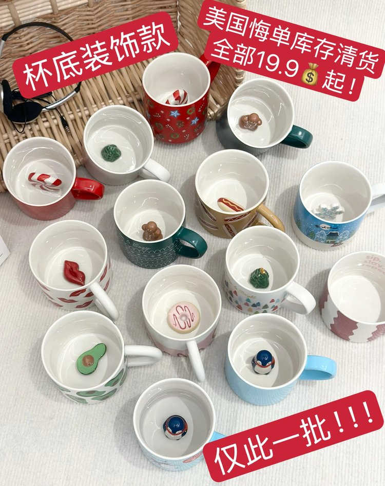 杯底有姜饼人、企鹅、棒棒糖、雪花、牛油果、甜甜圈等等系类