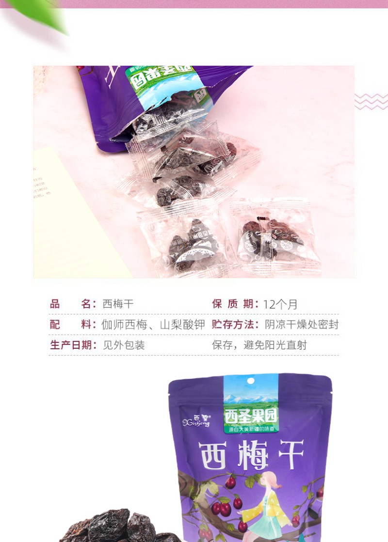 【西圣】 新疆特产 西梅干 休闲零食 无添加 新梅干 198g/袋