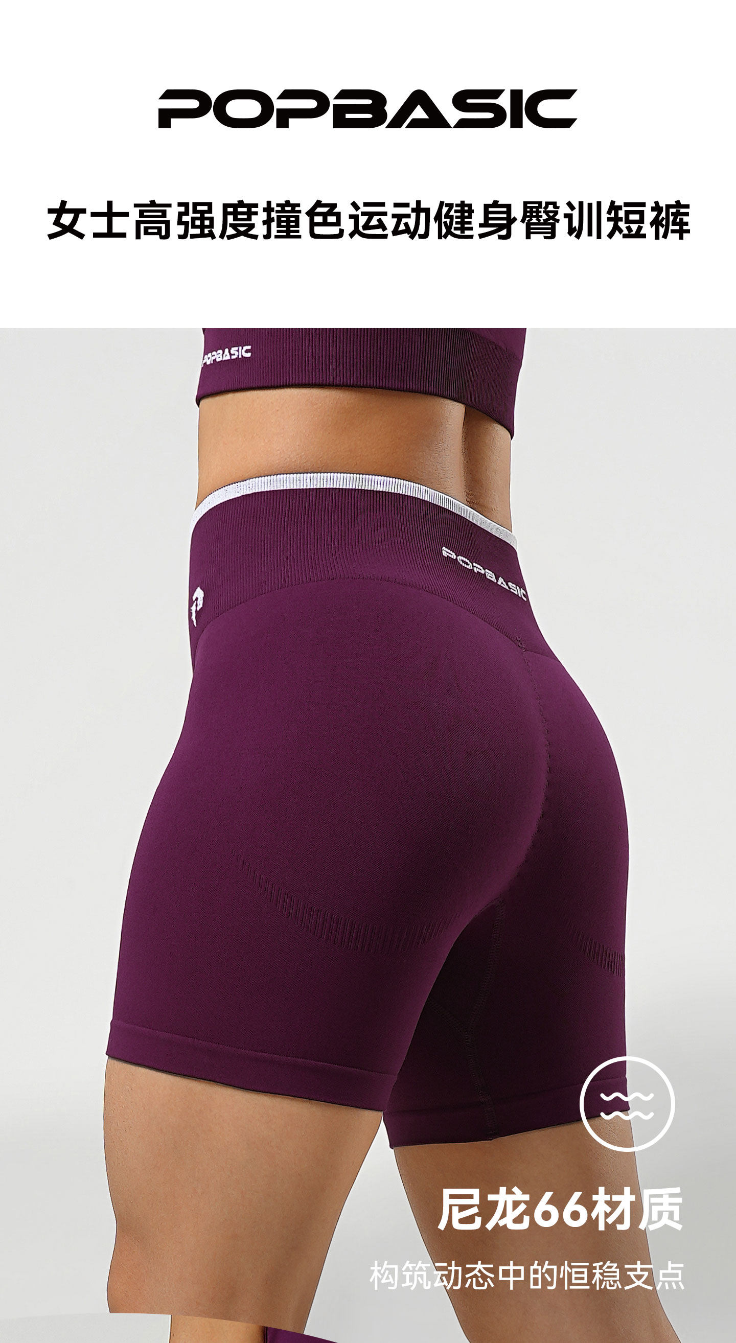 POPBASIC焕醒系列女士高强度撞色运动短裤紧身版型健身裤高强度