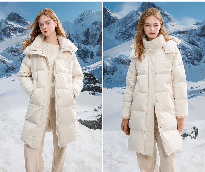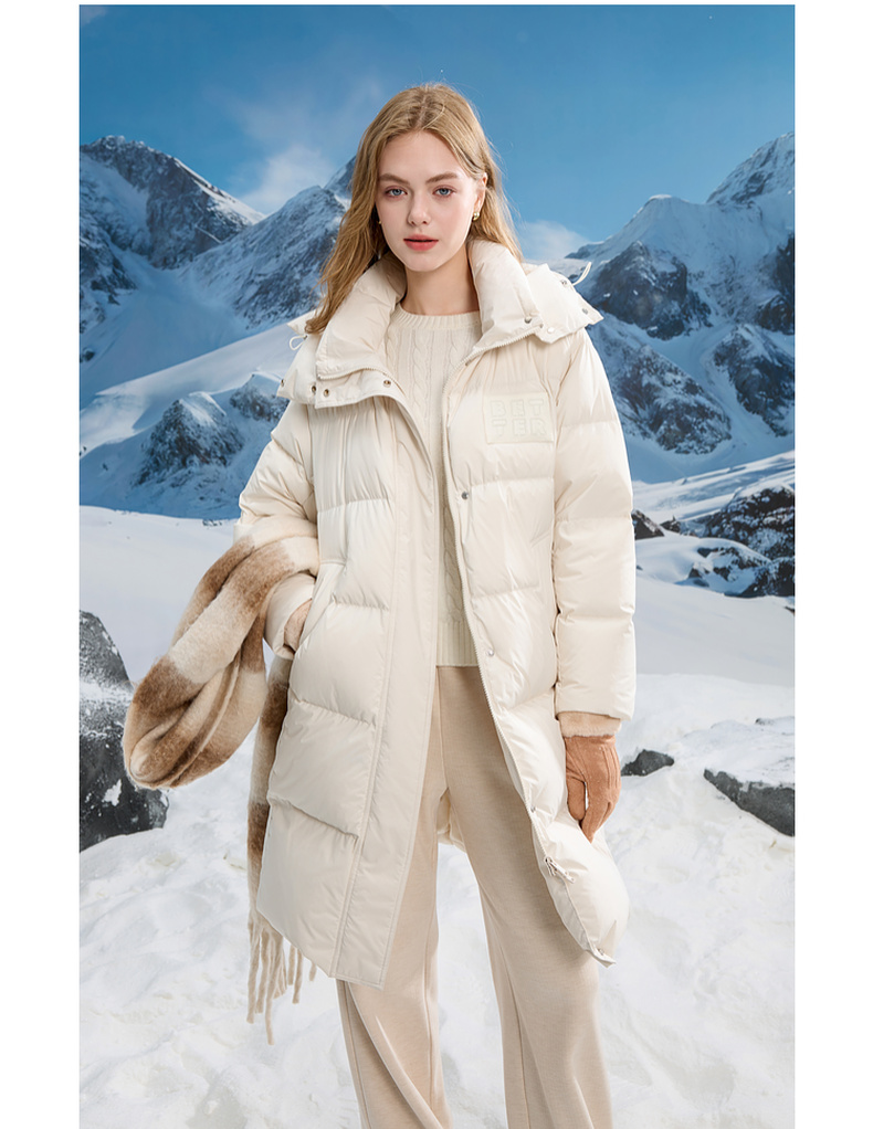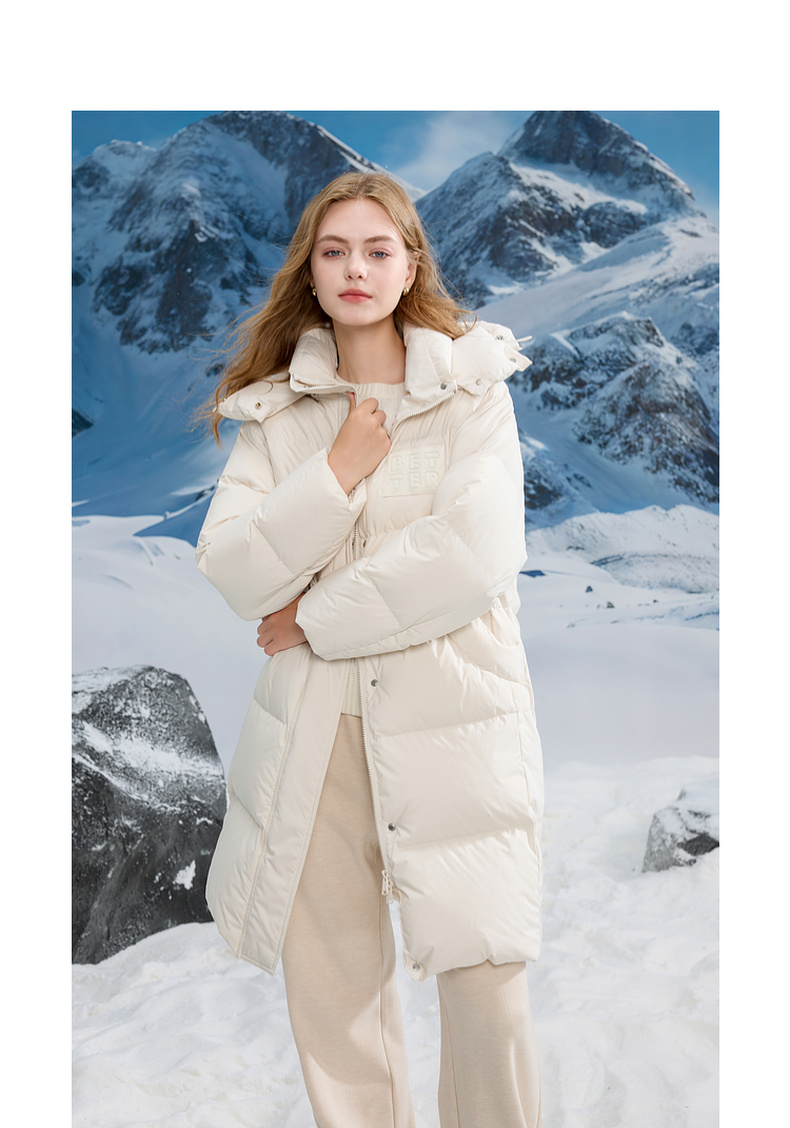 三彩独醒冬季新款连帽白鹅绒长款泡芙羽绒服面包服肯豆风女F